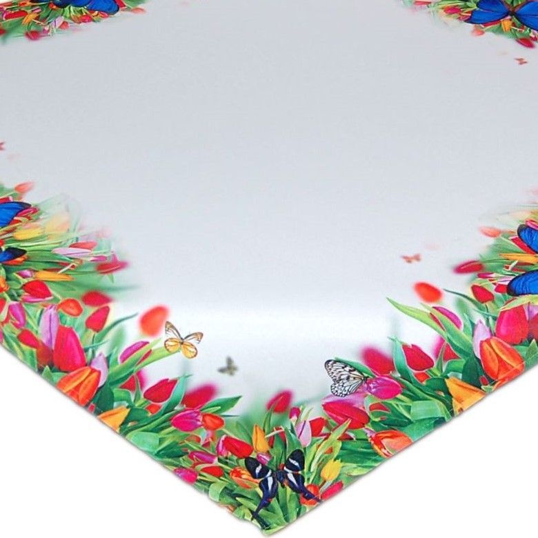 Frühling Tulpen Schmetterlinge Tischwäsche Pflegeleicht Stoff Bedruckt