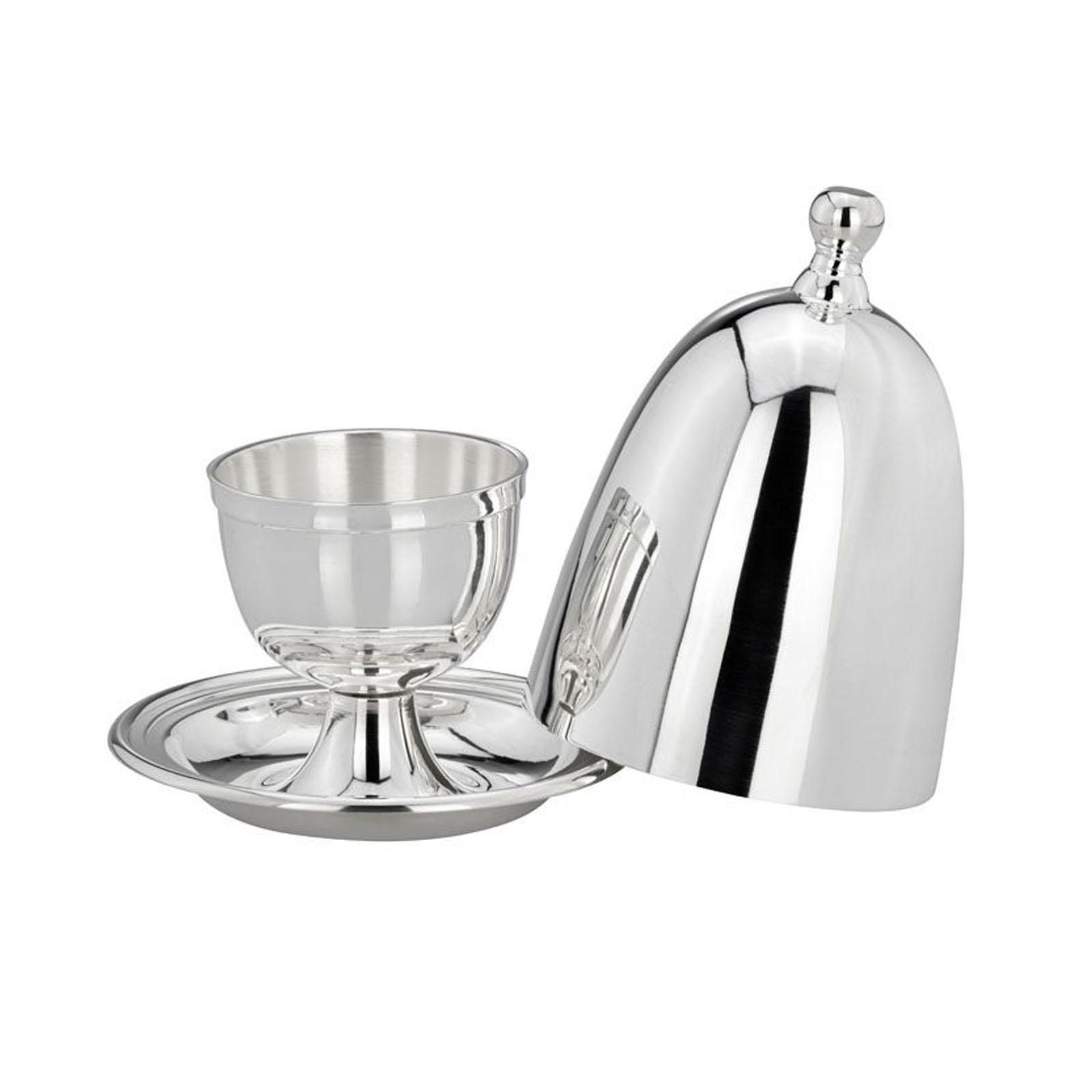 Frühstücks-Eierbecher mit Deckel 10,5 cm Messing versilbert Eierhalter mit Haube
