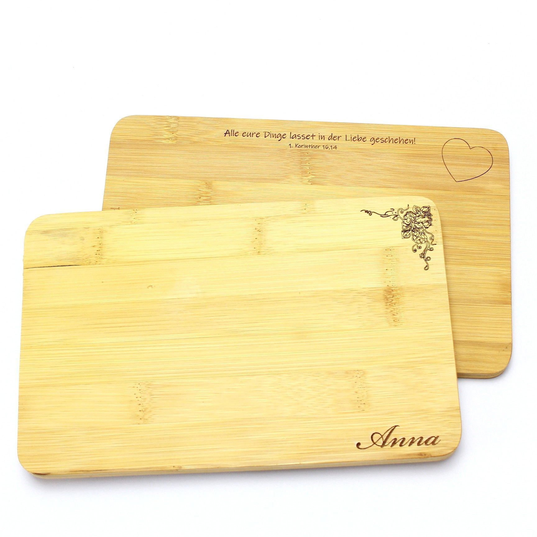 Ihr Frühstücksbrettchen eingraviertem Wunschmotiv Name 1. Korinther 16,14 Psalm 118,24 aus Bambus Grösse: 22 x 14 x 1 cm