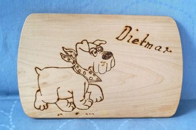 Frühstücksbrettchen Brettchen Holzbrett Hund NEU ca 24 x 15 cm Dietmar