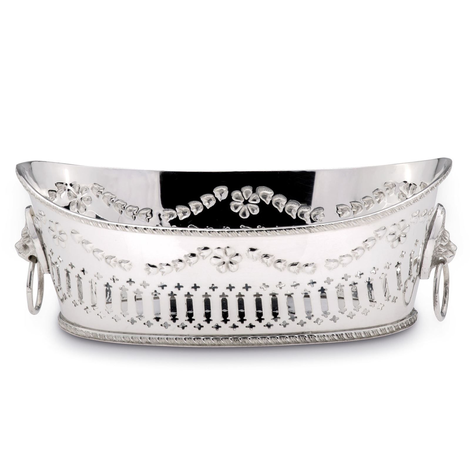 Frühstückskorb 23 cm oval Brotkorb verziert Brötchenkorb Gebäckkorb versilbert