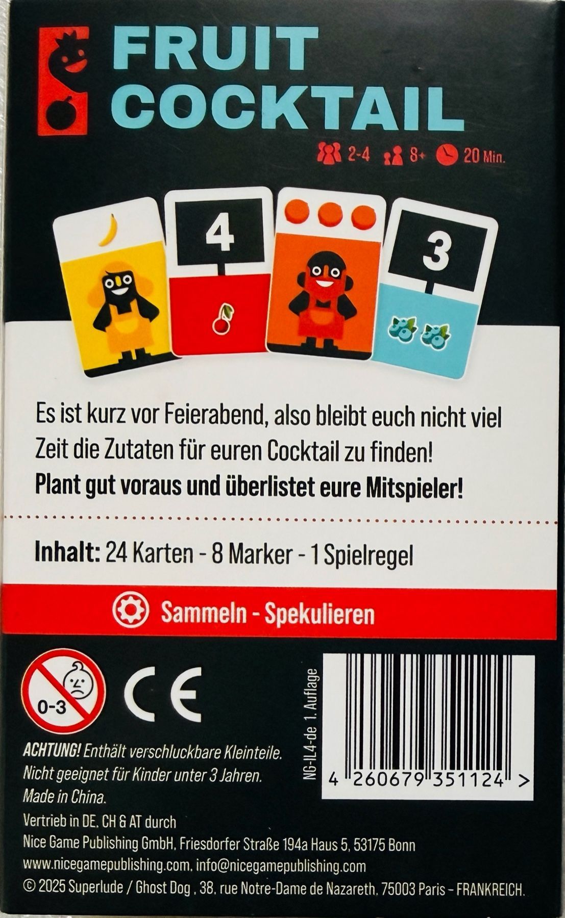 Fruit Cocktail Irrlichter Nice Game Familienspiel Kartenspiel Legespiel Drafting