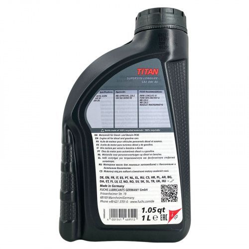 Fuchs Fuchs Titan Supersyn Longlife 0W-40 1 Liter