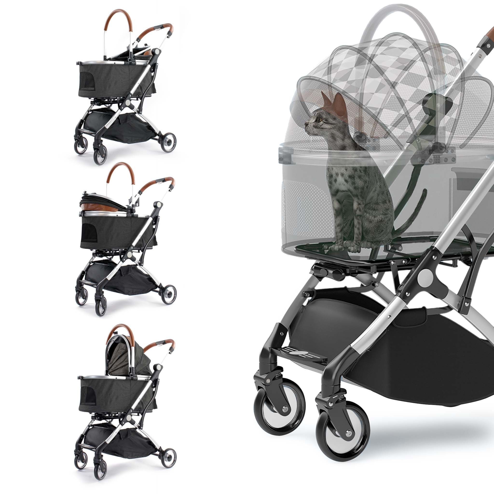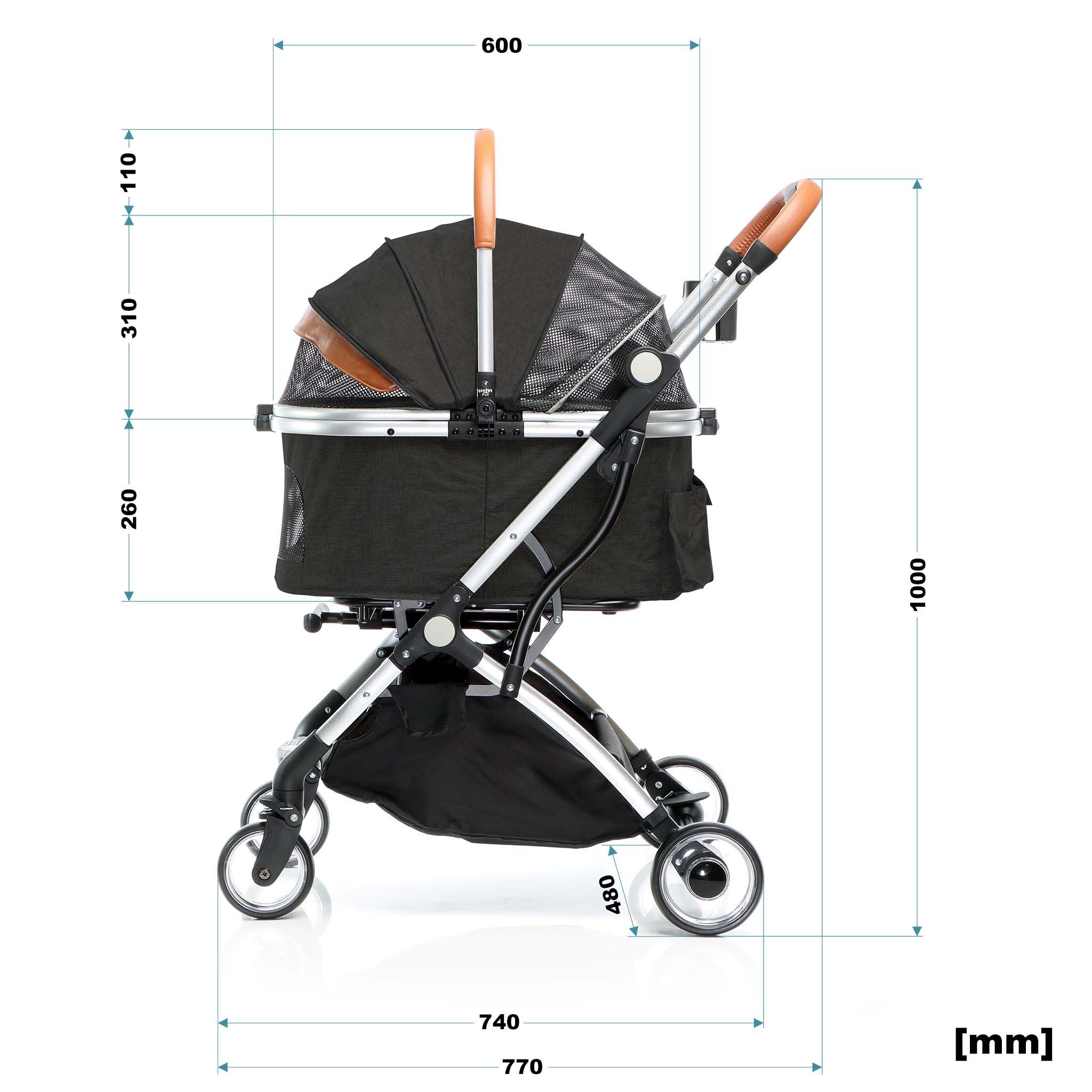 Fudajo 2in1 Hundewagen faltbar Hundebuggy Ablage Schwarz Haustierwagen Katze