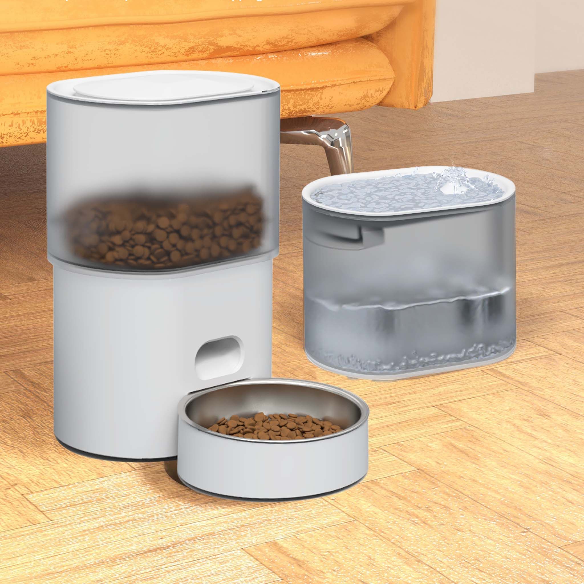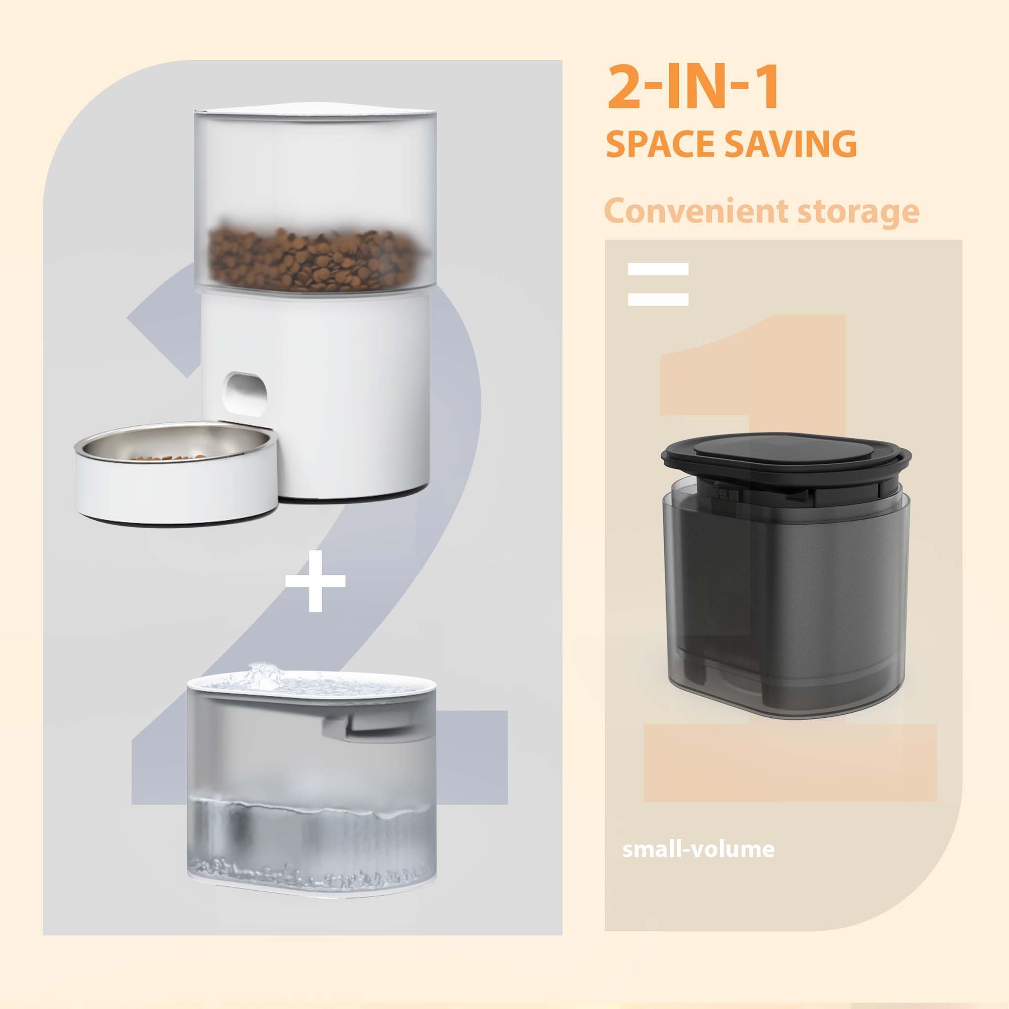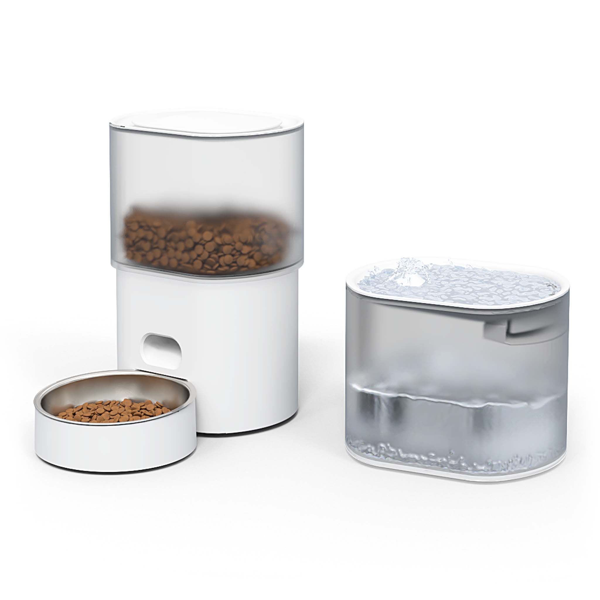 Fudajo Futter- und Trinkautomat weiß Katze Hund 3L Futterspender Trinkbrunnen