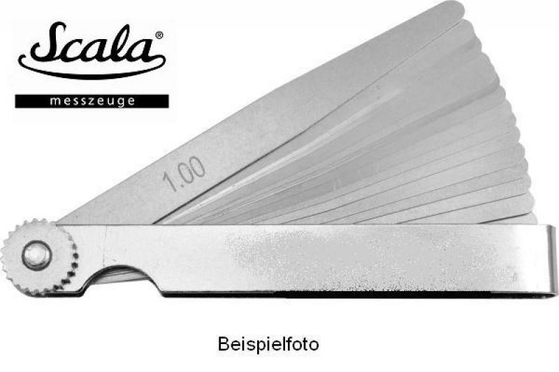 Fühlerlehre 0,05 - 1,00mm , 20-teilig , aus Edelstahl , Abstandslehre Scala-470.203 - vorhandene Stärken: 0,05 0,10 0,15 0,20 0,25 0,30 0,35 0,40 0,45 0,50 0,55 0,60 0,65 0,70 0,75 0,80 0,85 0,90 0,95 1,00mm - Gesamtlänge 100mm, Fühlerlänge bis Mitte Schraube 90mm - 13mm breit - mit spitzzulaufenden... Mehr