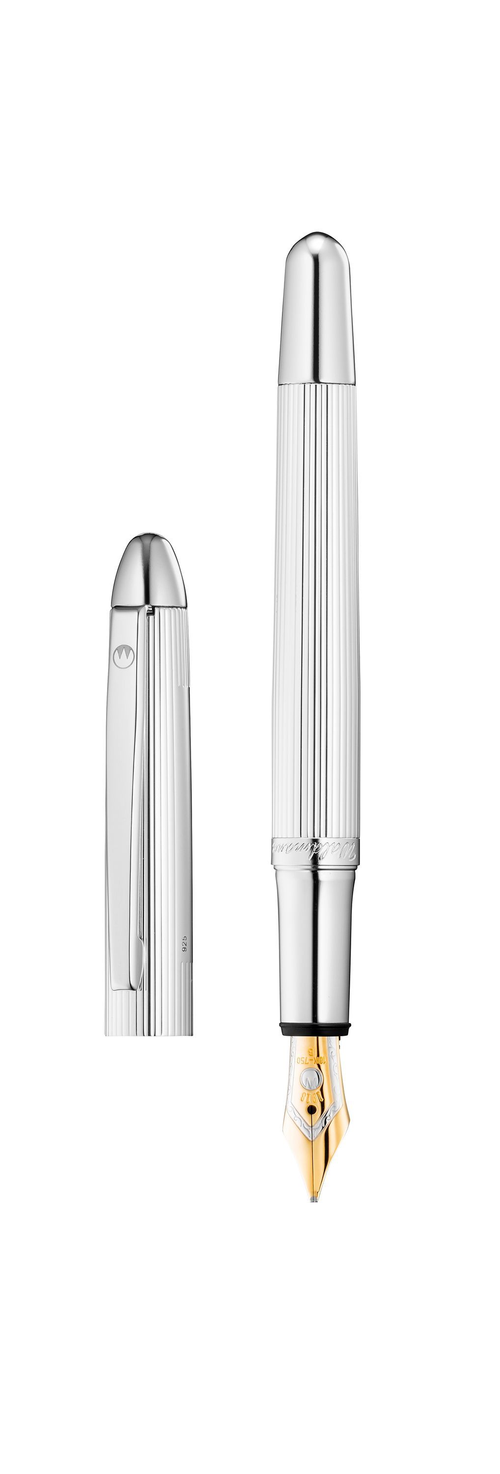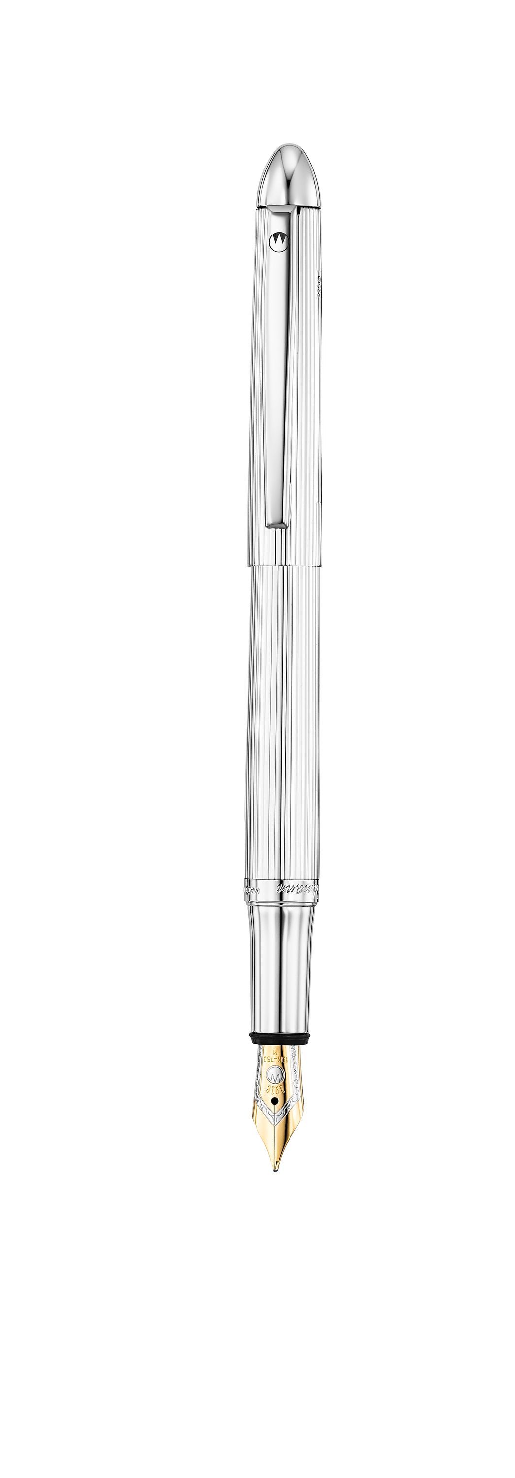 Füllfederhalter Waldmann Pocket, Linien-Design Silber (Goldfeder: EF, , , )