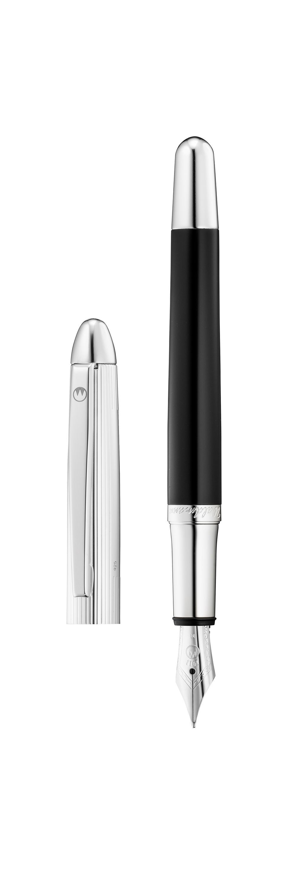 Füllfederhalter Waldmann Pocket, Linien-Design Silber/Lack schwarz