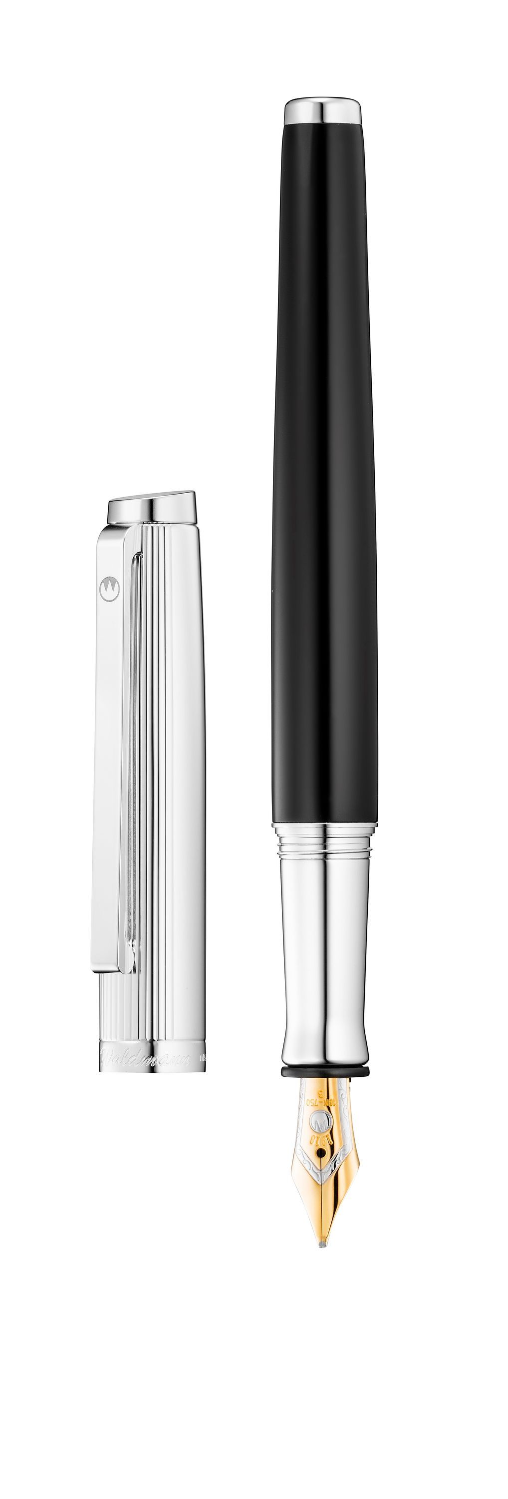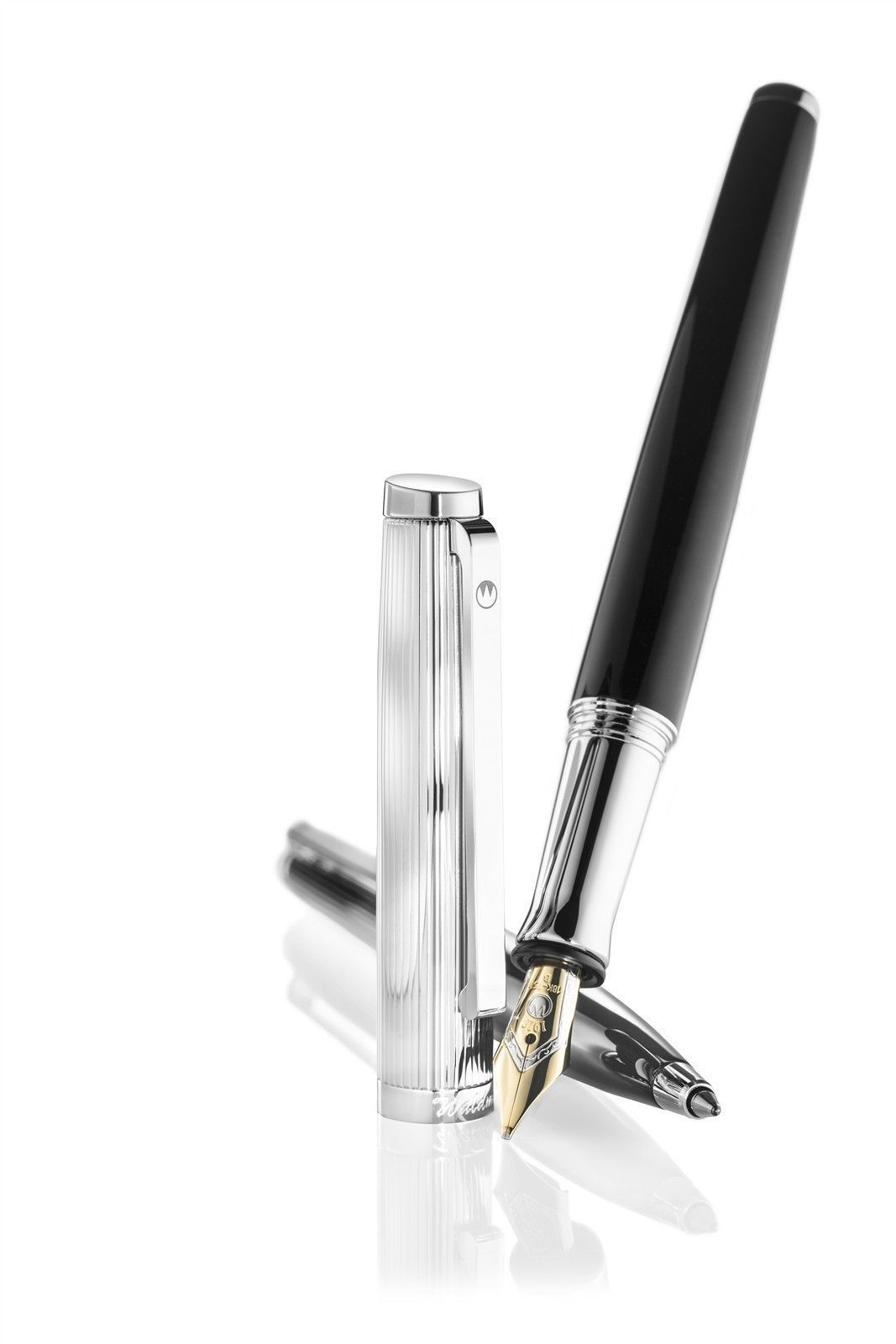 Füllfederhalter Waldmann Tuscany, Linien-Design Silber/Lack schwarz