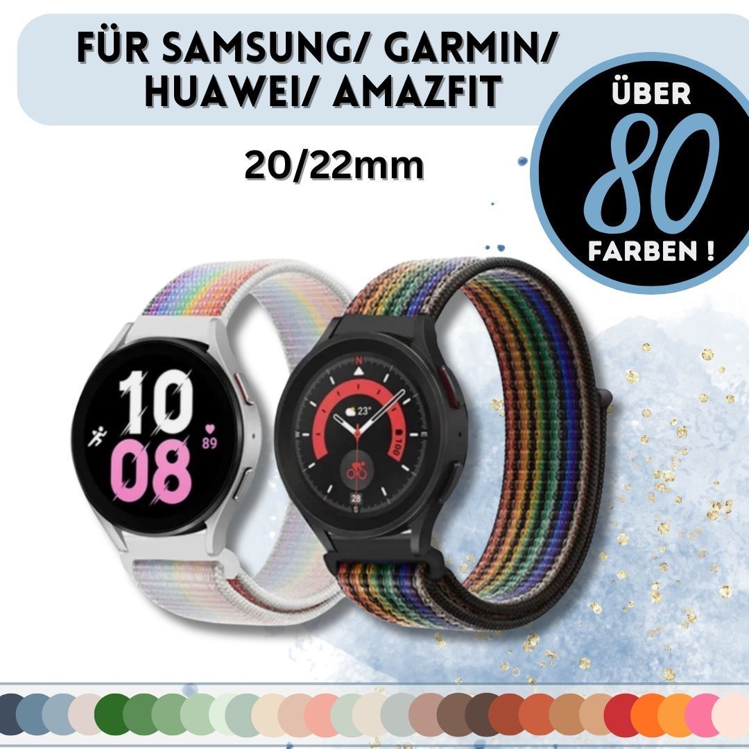 Für Amazfit Huawei Samsung Garmin Watch Armband 20mm 22mm Nylon Loop