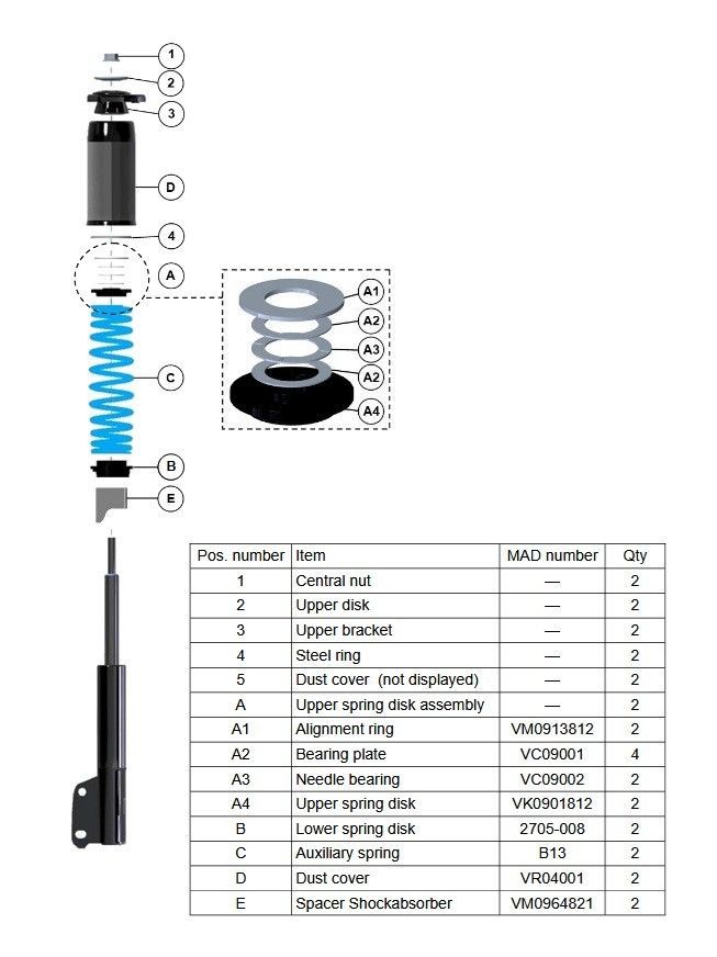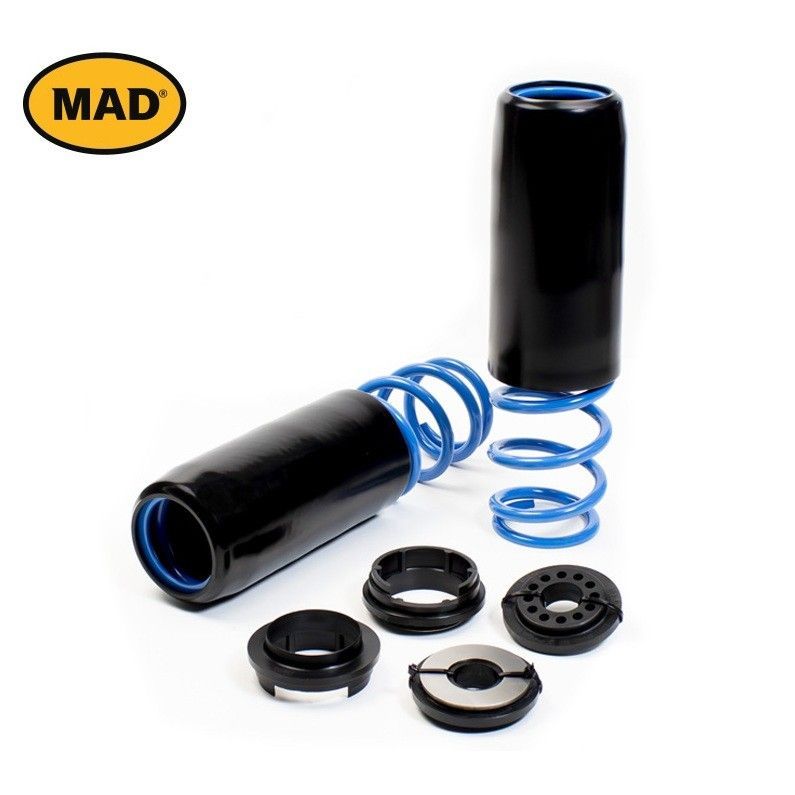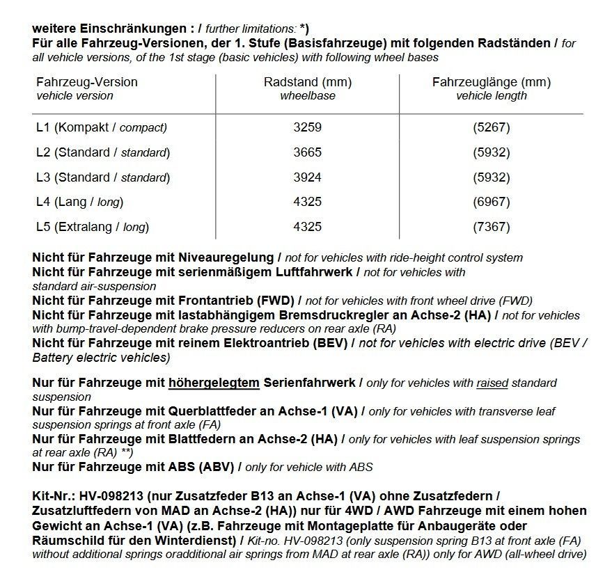 MAD 1 Satz Zusatzfedern für die Vorderachse zur Verstärkung der serienmässigen Federung. Die Zusatz-Federn werden auf den original Stoßdämpfer gebaut. Passend für: CS Reisemobil auf Sprinter 4x4 - Allrad Typ W 907 Durch die Verstärkung erfolgt eine Höherlegung des Aufbaus an Achse-1 (VA) um ca. 15-20mm HV-098213
