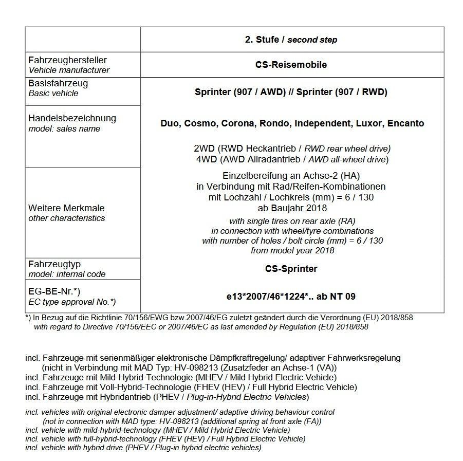 für CS Reisemobile Encanto auf Sprinter 4x4 MAD Zusatzfedern Höherlegungsfedern VA
