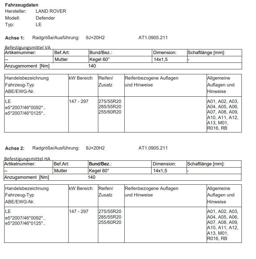 für Defender LE Twin Monotube Felgen 20 Zoll Allterrain 9x20 Anfahrschutzring 4 Stück