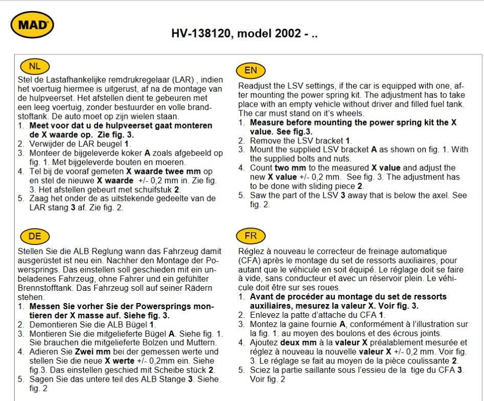 MAD Zusatzfedern für die Hinterachse zur Verstärkung der serienmässigen Blattfedern für Fiat Ducato 10 - 14 - 18 Typ 230 - 230L / Baujahr 1994 - 2002 Bitte beachten Sie: Höherlegung an der HA um ca. 30mm - nur für Fahrzeuge mit Einzel-Blattfedern - nicht für 4x4 Der ordnungsgemäße Einbau muss durch eine zugelassene Prüforganisation bestätigt werden Artikelnummer: HV-138120