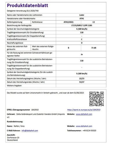Komplettrad für Master III aus: Delta 4x4 Klassik B Felge und Loder AT1 - #AT1 in 235/60 R17 118S C - D - 73dB (B) - Alpin ( EU Reifenlabel ) Allwetterreifen mit Schneeflockensymbol ( 3PMSF ) Traglast 118 - bis 1320kg je Reifen Geschwindigkeitsindex - S bis 180 km/h