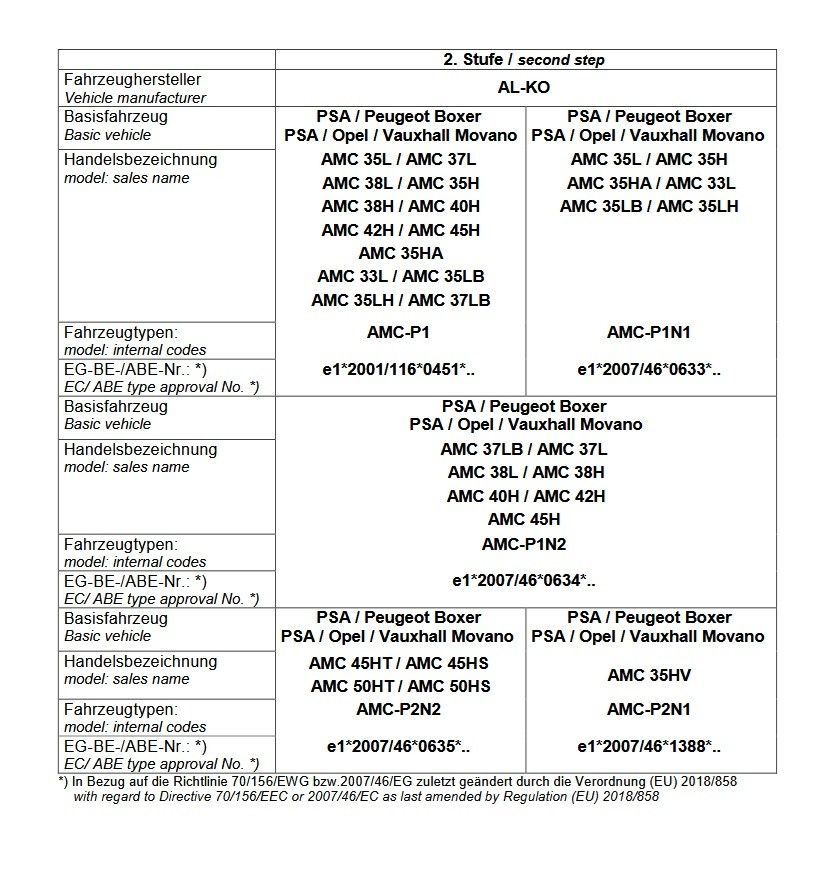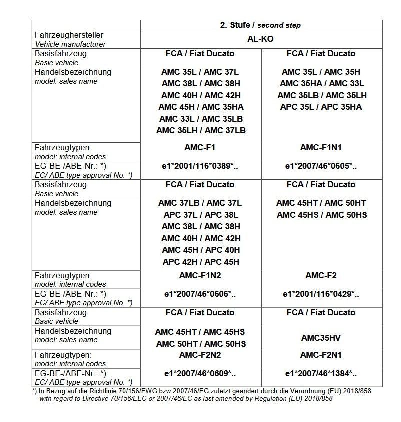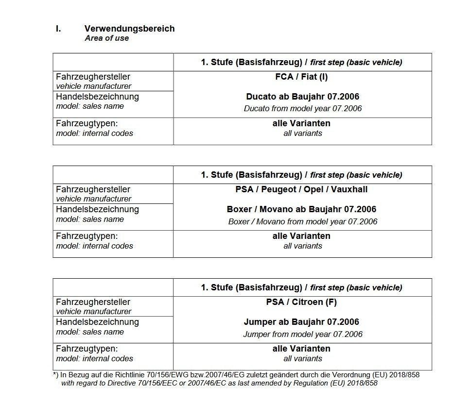 Für Reisemobilmodell wie bspw.