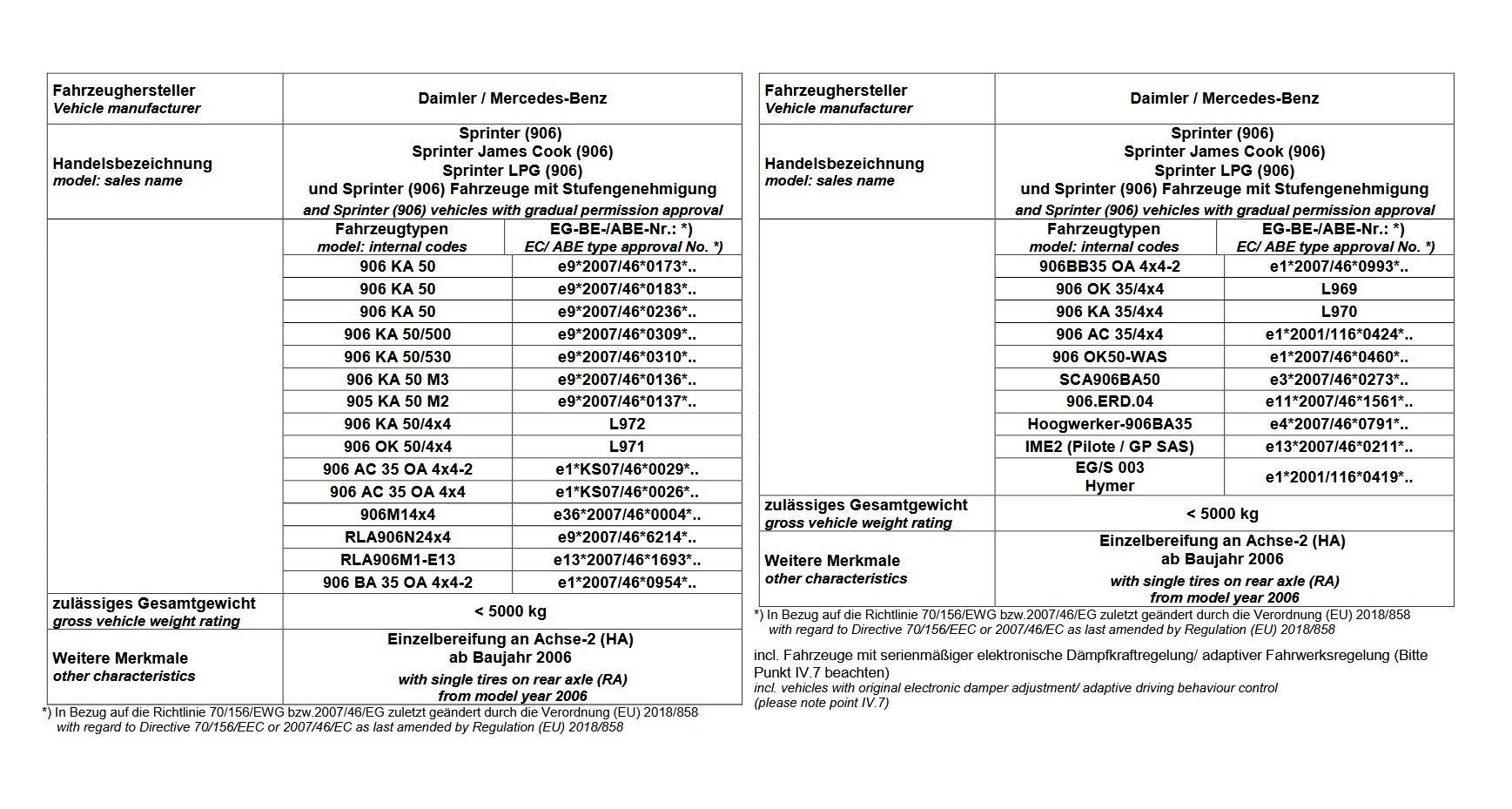 für Sprinter 906 Allrad 4x4 MAD Zusatzluftfeder Luftfederung Basis NR-197564