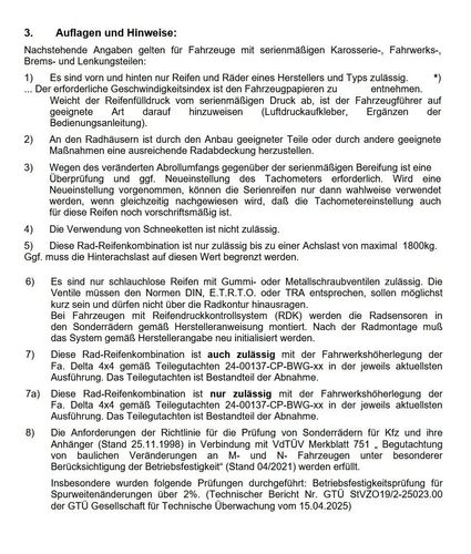 Delta 4x4 Hanma Rugged Felge für VW T7 Caravelle + Transporter Typ NVN - NSN ( ab Modelljahr 2025 ) Bitte beachten Sie: Sie finden genauere Angaben wie z.b die EG-Genehmigungsnummern in den Artikelfotos. Farbe: matt schwarz Technische Daten Dimension 9x18 ET25 Lochkreis 6x120 Traglast 1100 kg Für Bereifung 18 Zoll 235/55 - 255/55 Auflagen in den Fotos Zulassung: Gutachten Lieferumfang: 1x Felge Artikelnummer: RMEC6C025820.XYZ.1001