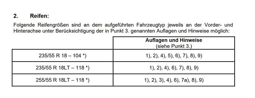 für Bereifung / 18 Zoll
