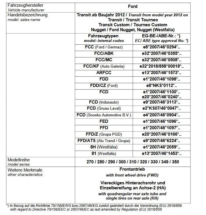 für Transit VII ab 2019 V363 Pritsche MAD Zusatzluftfeder Komfort HA FWD NR-067264-C