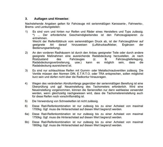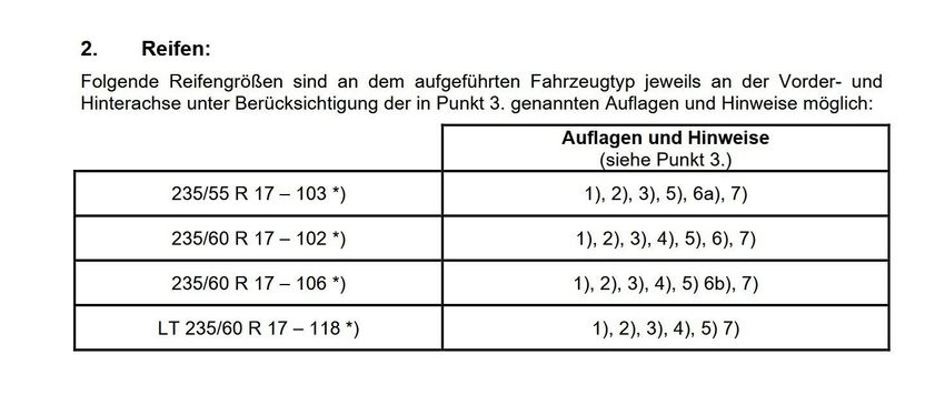 für Bereifung / 17 Zoll
