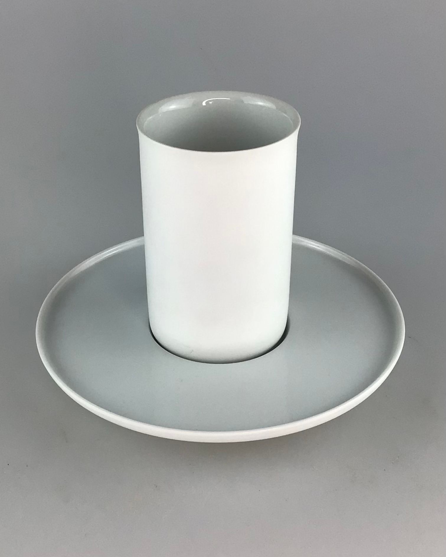Fürstenberg Reliefbecher weiß m. Untertasse 13x17,5cm
