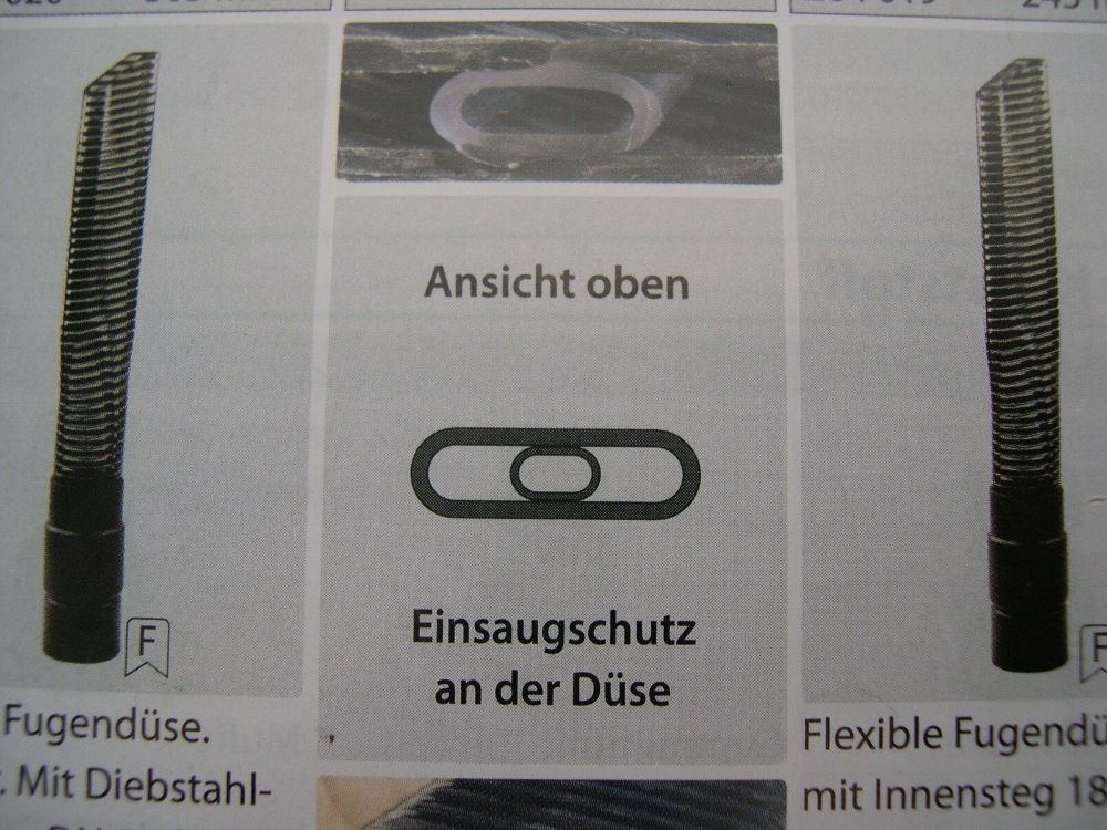 Neuware - mit Rechnung und ausgewiesener Mehrwertsteuer flexible Profi-Fugendüse (siehe Foto) Industriequalität Fugendüse : Länge 420mm mit Eingangsmuffe 38mm oder 50 mm - mit drehbarer Muffe - mit Diebstahlsicherung - Länge: 420mm - Durchmesser ist wählbar (DN 38mm oder DN 50mm) - Einsaugstutzen Ei