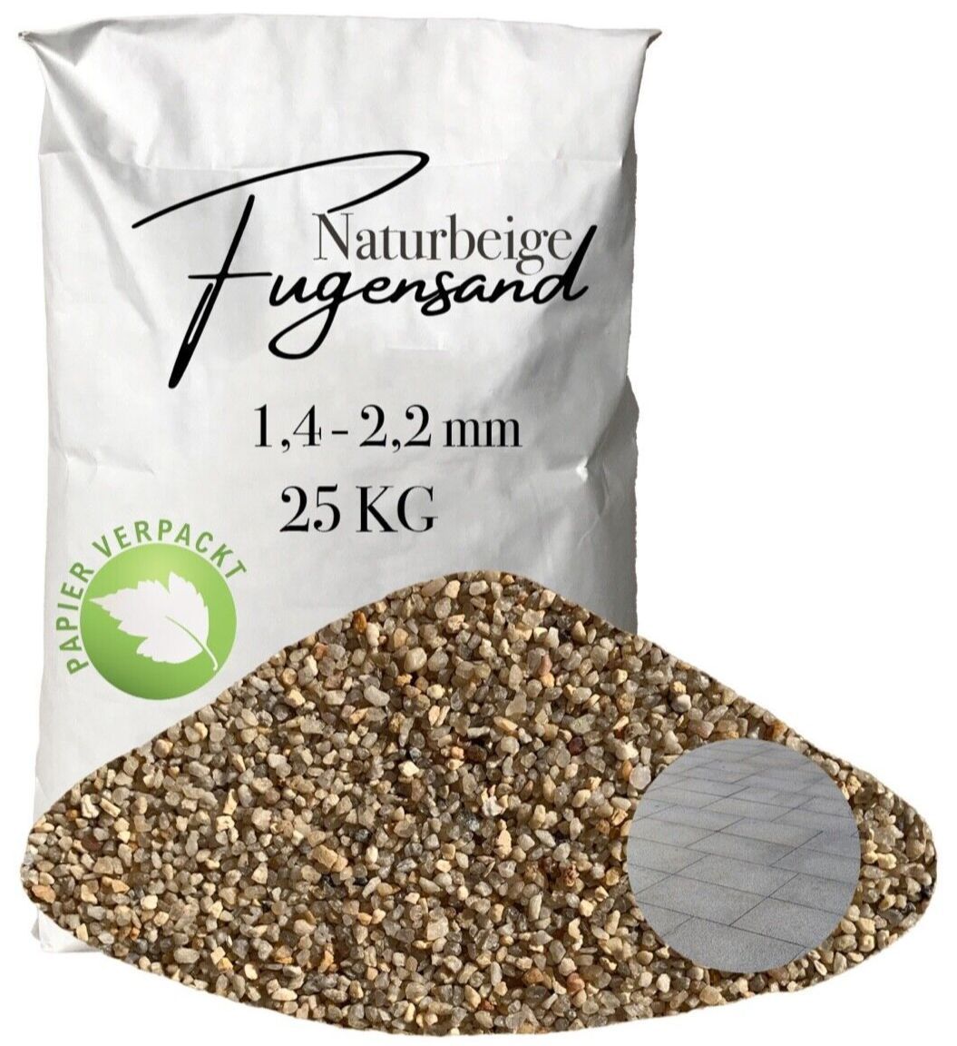 Fugensand Naturbeige 1,4-2,2 mm 25 kg Papier - Quarzsand für Pflastersteine, Terrasse