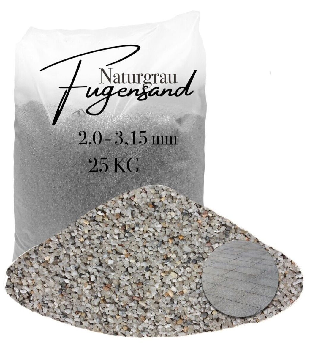 Fugensand Naturgrau 2,0-3,15 mm - 25 kg - Optimale Körnung für Pflasterfugen und Terr
