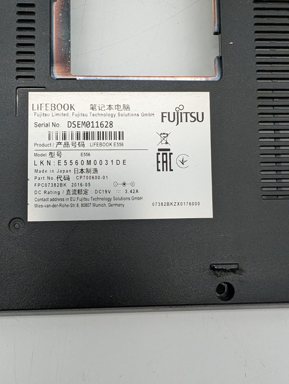 Fujitsu Fujitsu LifeBook E556 Bottom / Gehäuseunterteil / Unterschale