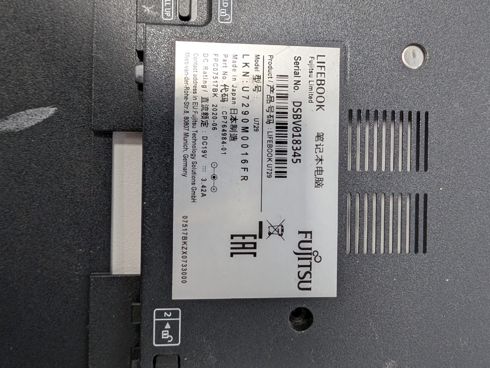 Fujitsu Fujitsu LifeBook U729 Back Cover / Rückabdeckung