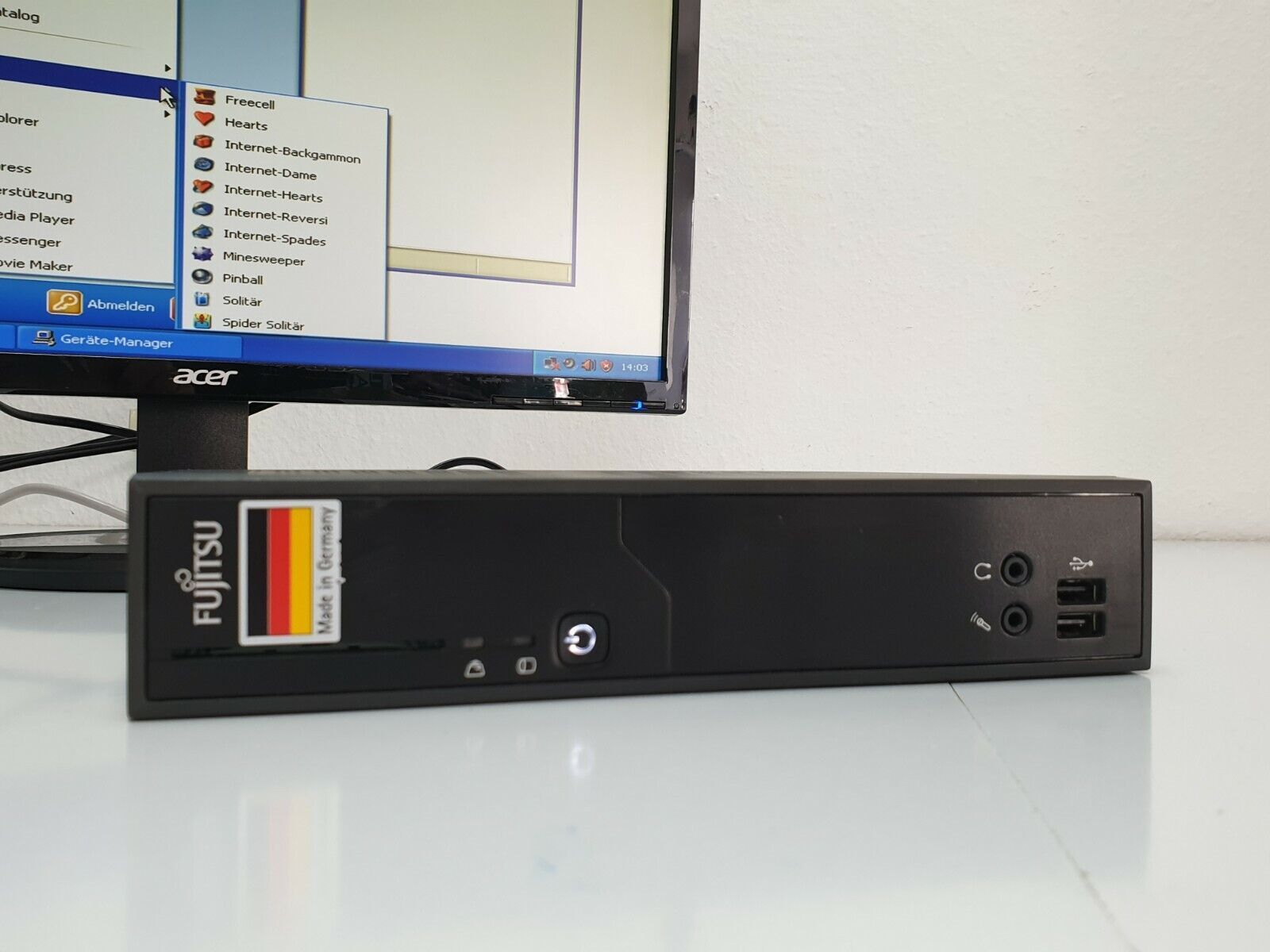 Fujitsu Mini PC Windows XP Computer Klassiker 64GB mSAT SSD 1,2GH 2GB COM RS 232