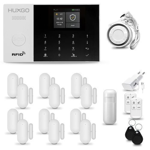 HUXGO Funk Alarmanlage Set 4G mit Sirene, 1x Bewegungsmelder, 12x Tür- Fenstersensor HXA005