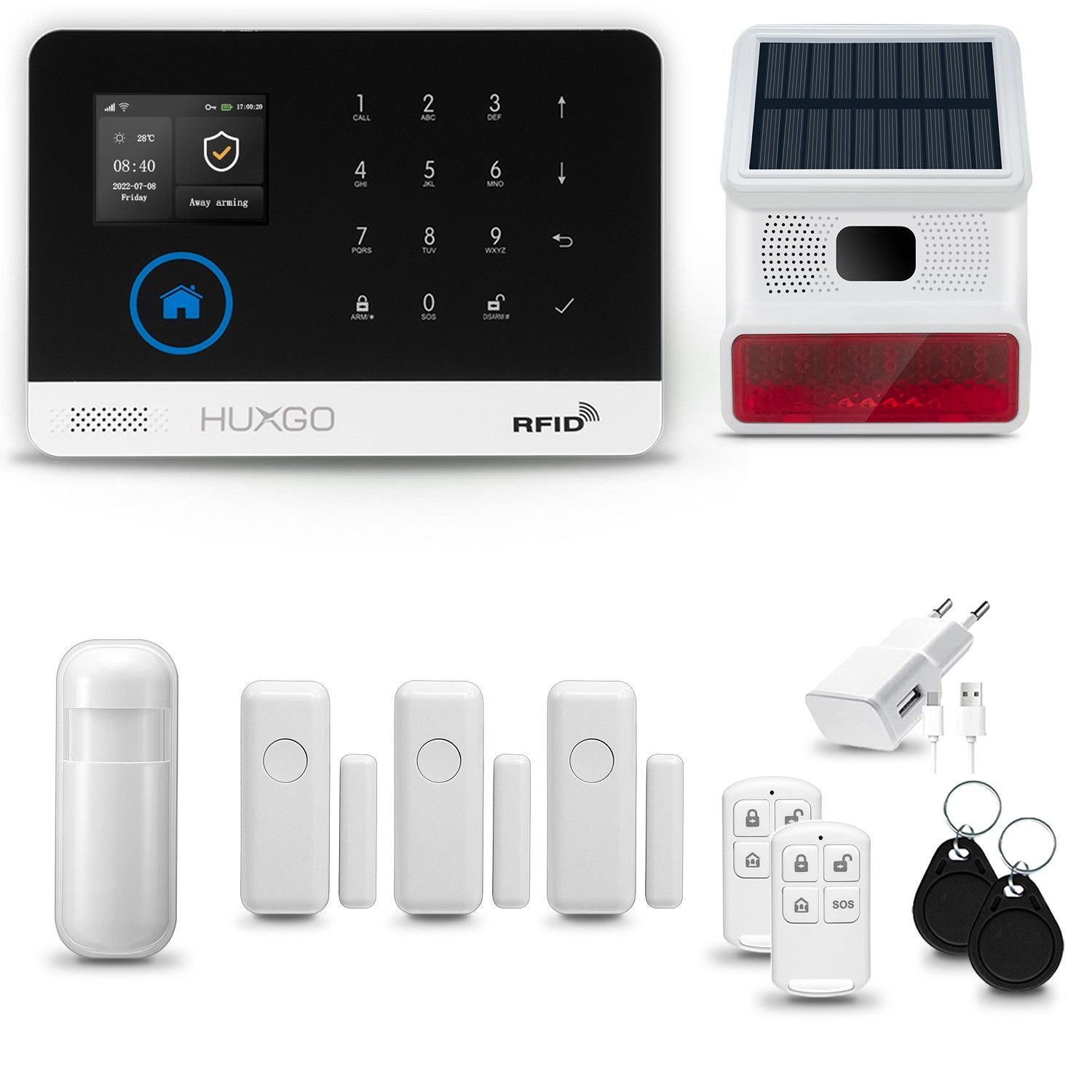 HUXGO Funk Alarmanlage Set HXA003 WiFi + GSM4G mit Alarm | Alarm System mit 3x Türsensoren