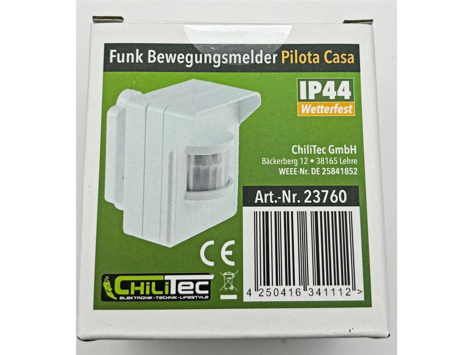 ChiliTec Funk-Bewegungsmelder für "Pilota Casa" IP44, 90°/8m PIR, Aufputz, weiß