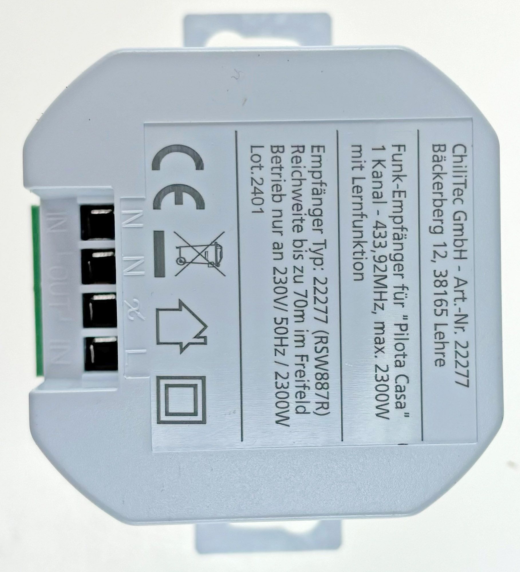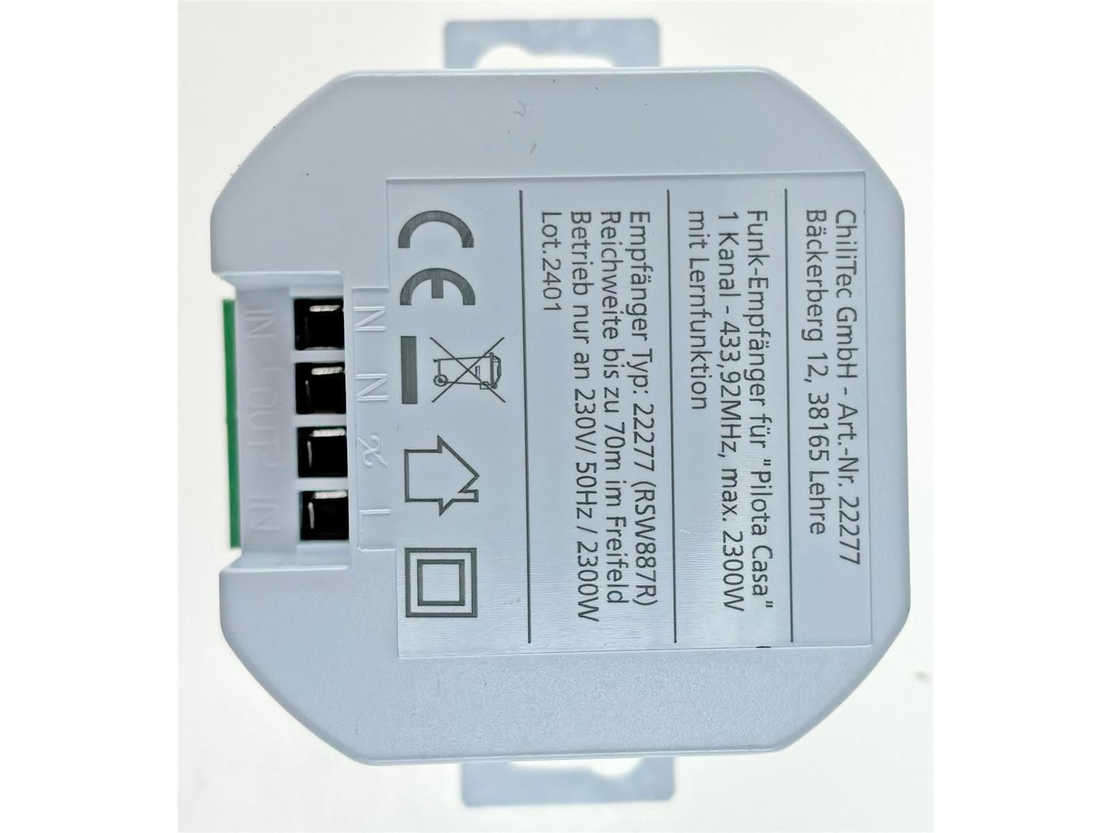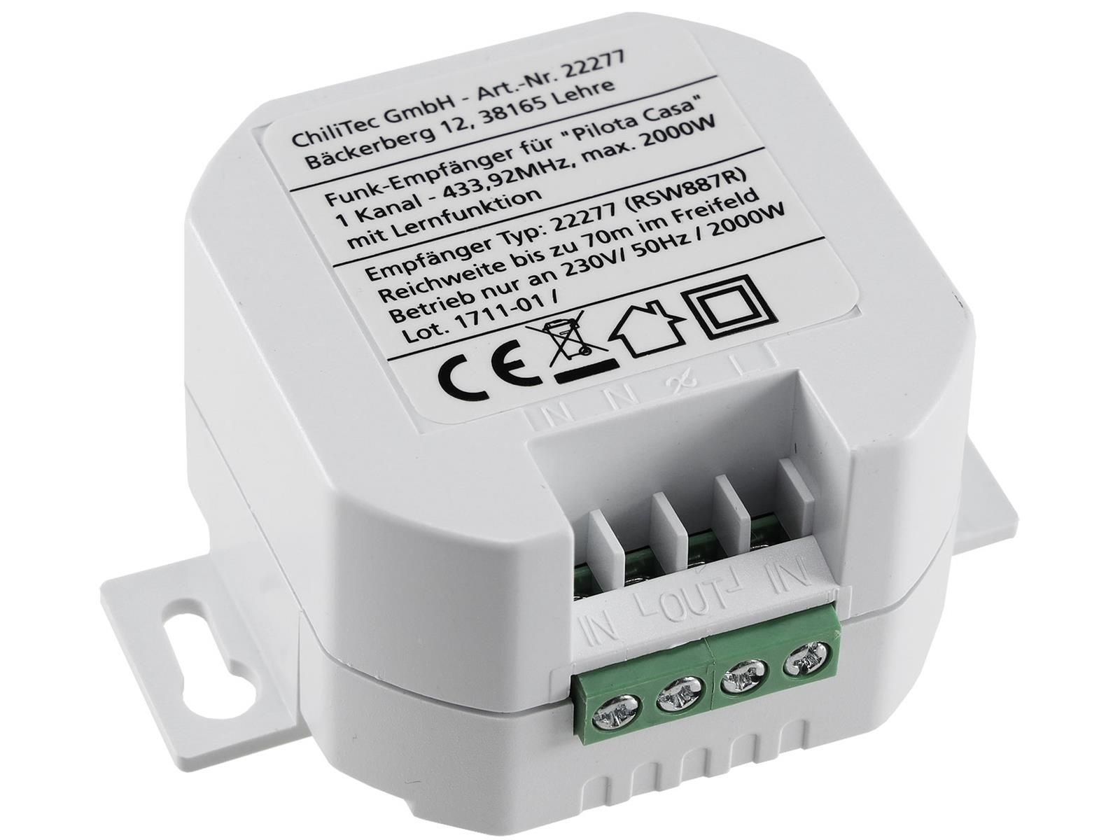 ChiliTec Funk-Empfänger für "Pilota Casa" 1-Kanalmax. 2000W, Ersetzt einen Schalter