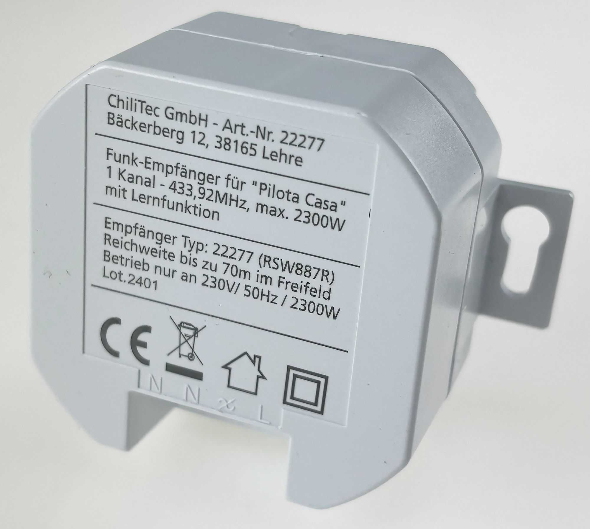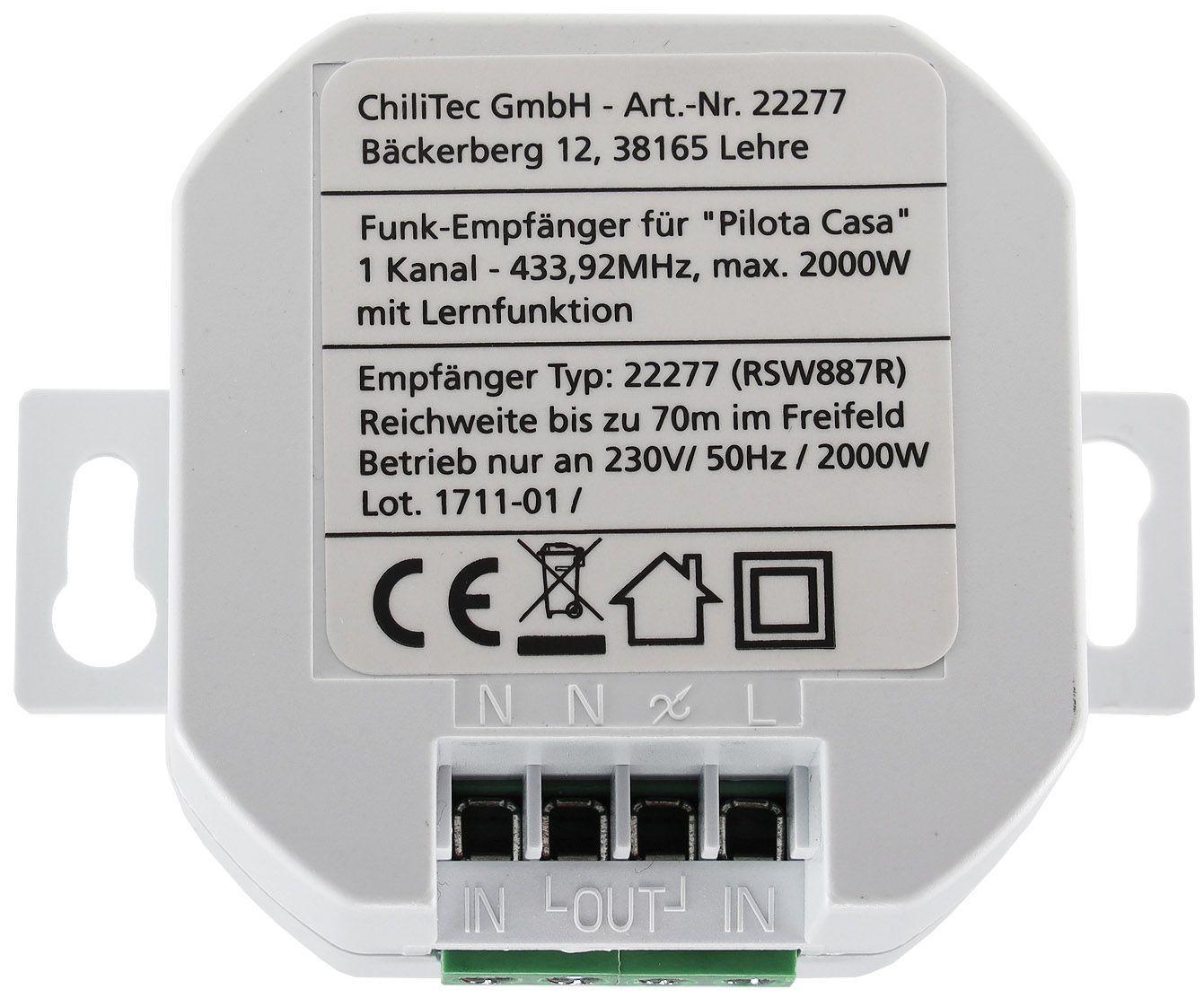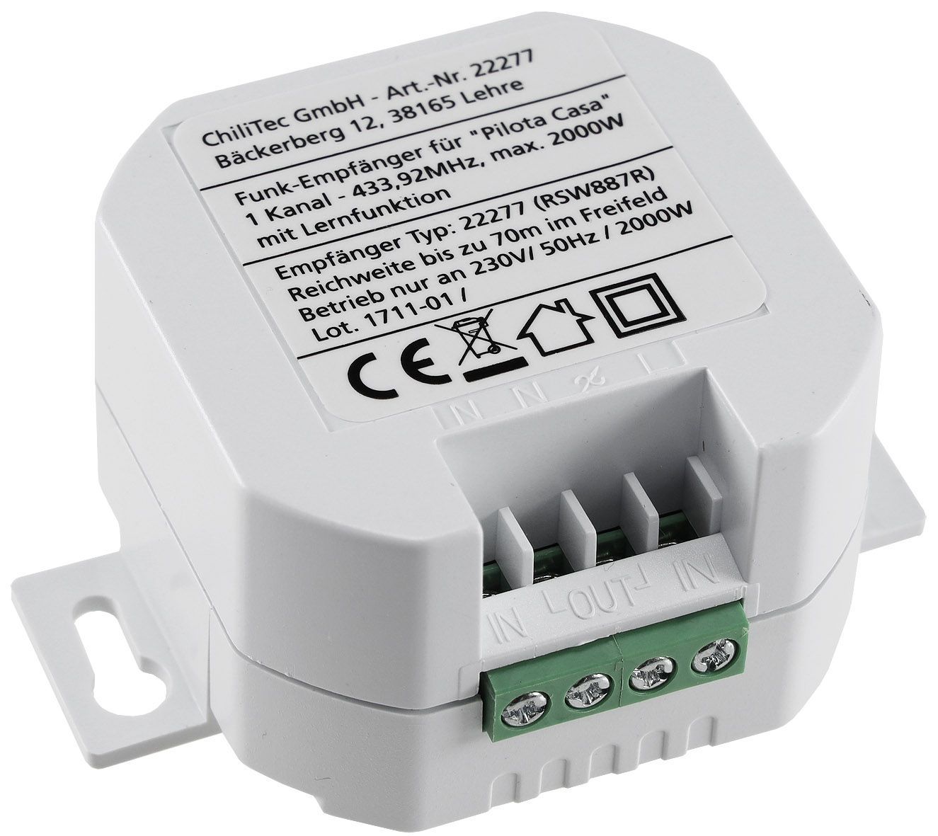 ChiliTec Funk-Empfänger für "Pilota Casa" 1-Kanalmax. 2000W, Ersetzt einen Schalter
