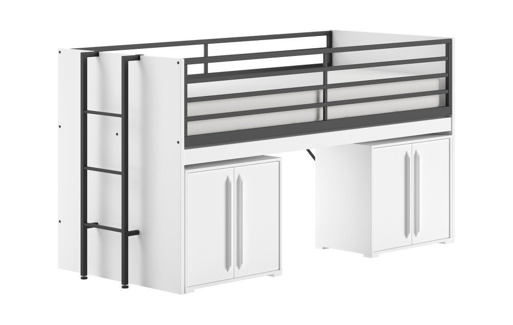 VIPACK Funktionsbett 90x200 Schreibplatte 2 Kommoden 2T Halbhochbett Spielbett Weiß