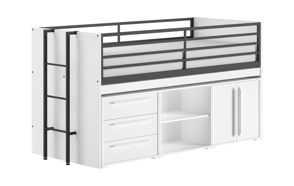 VIPACK Funktionsbett 90x200 Schreibplatte Regal 2 Kommoden Halbhochbett Spielbett Weiß