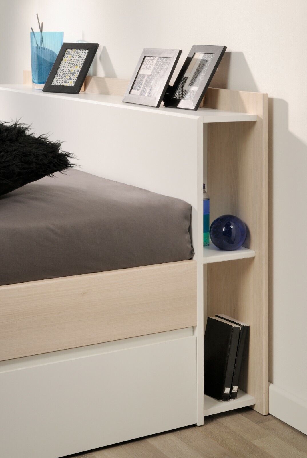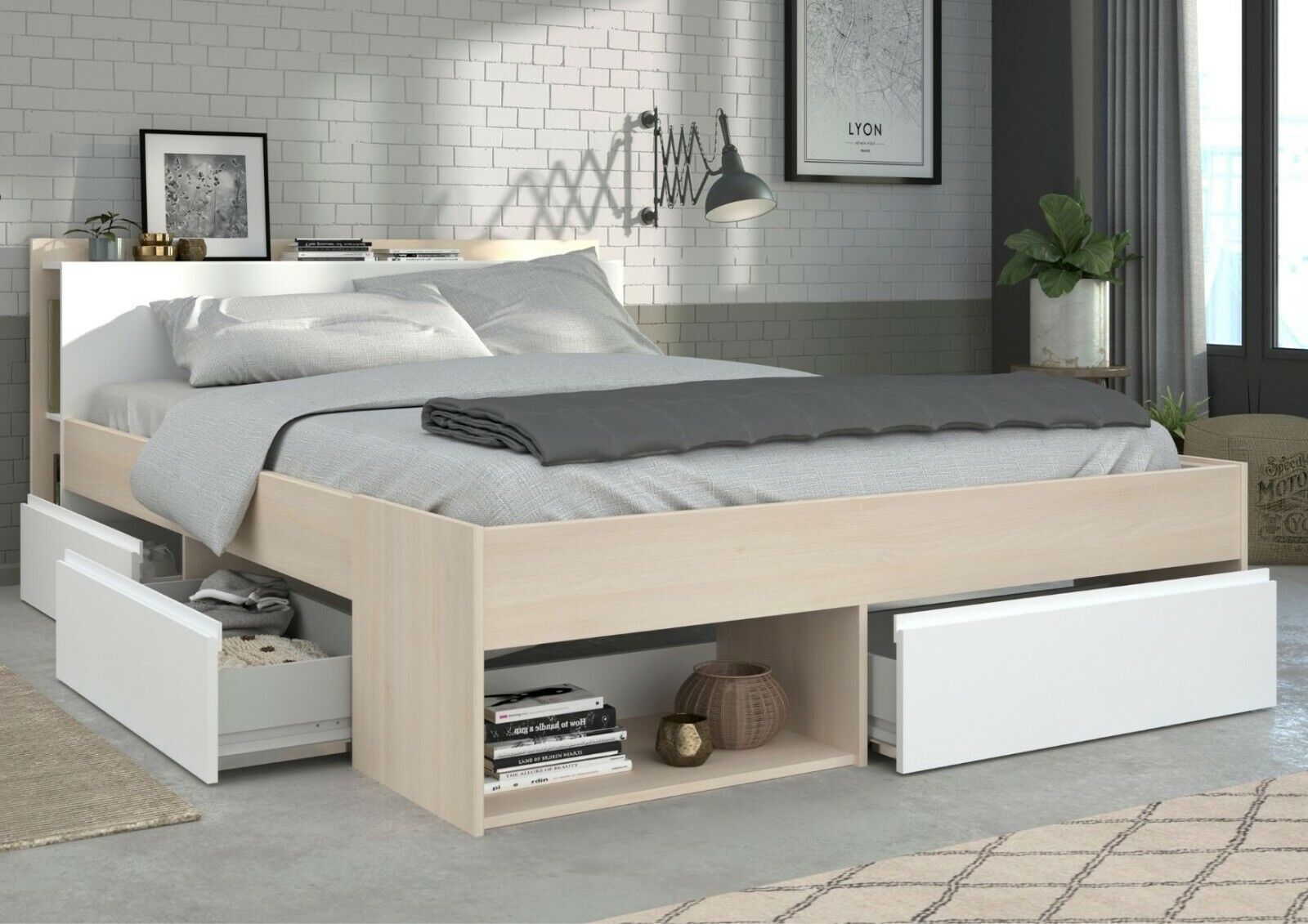 Parisot Funktionsbett Most Parisot + 3 Bettkästen + Kopfteil-Regal + Fächer Stauraumbett