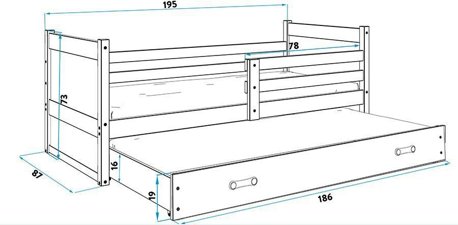 Funktionsbett RICO 190x80cm KIEFER + 2. Farbe mit Lattenroste und Matratzen