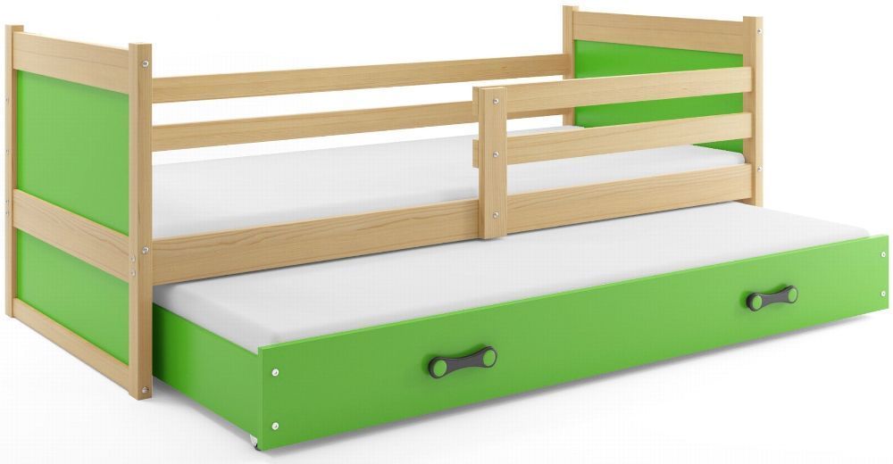 Funktionsbett RICO 200x90cm KIEFER + 2. Farbe mit Lattenroste und Matratzen