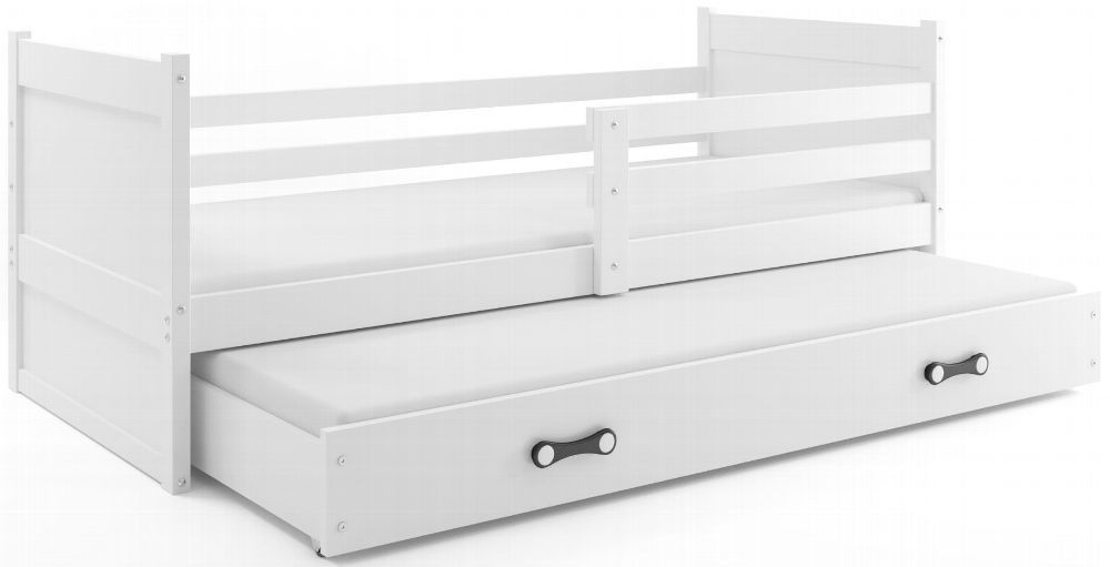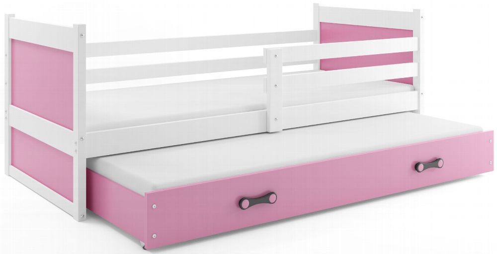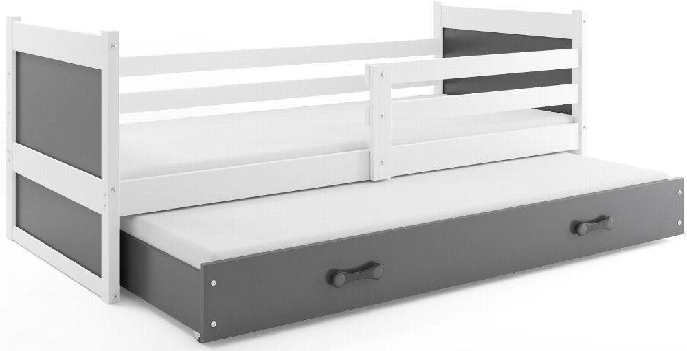 Funktionsbett RICO 200x90cm WEIß + 2. Farbe mit Lattenroste und Matratzen