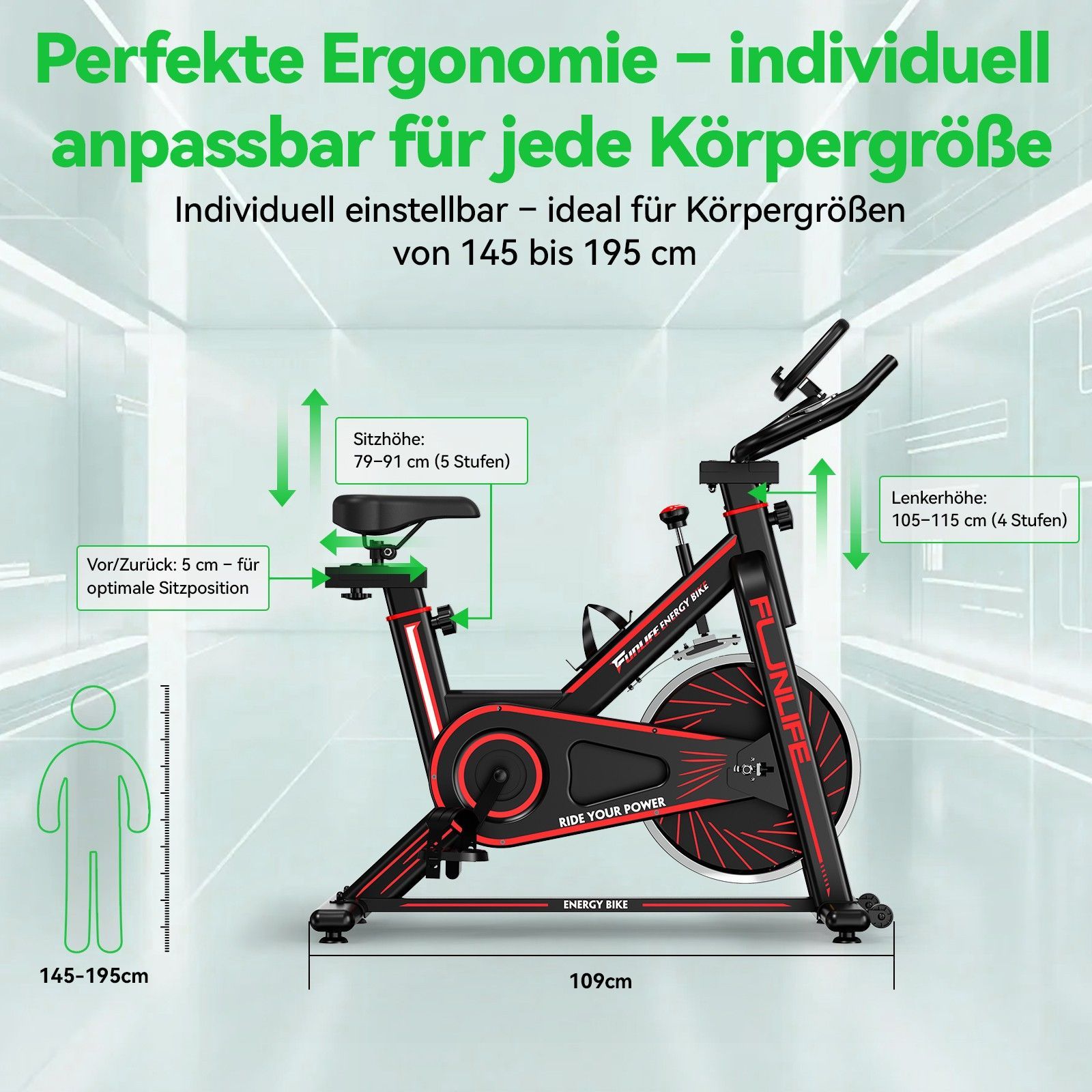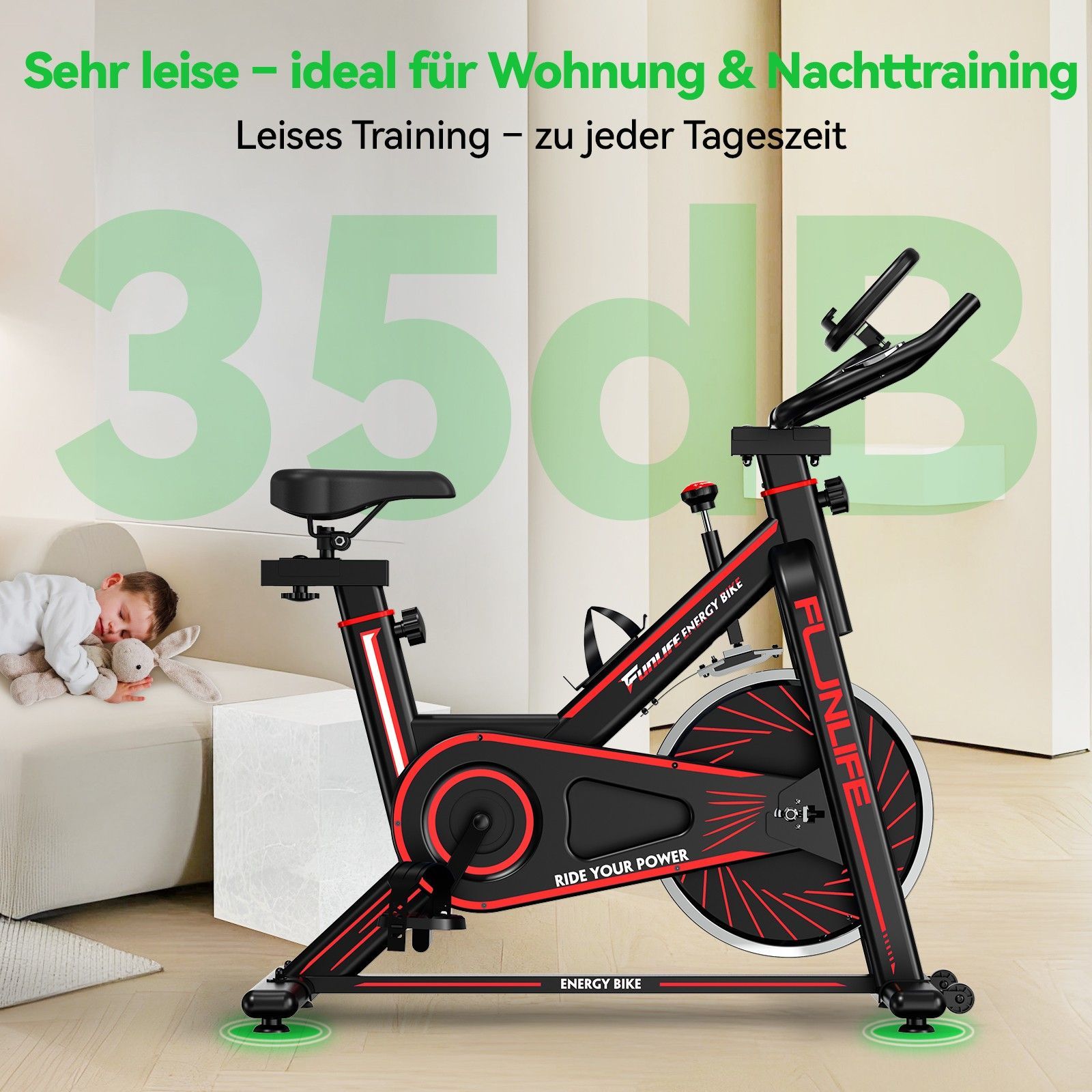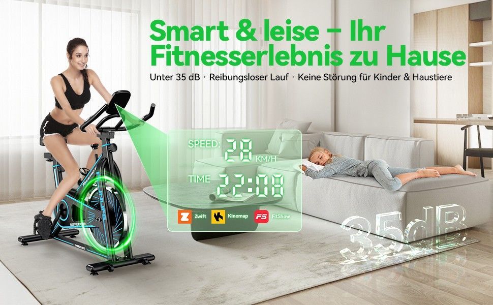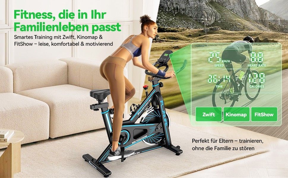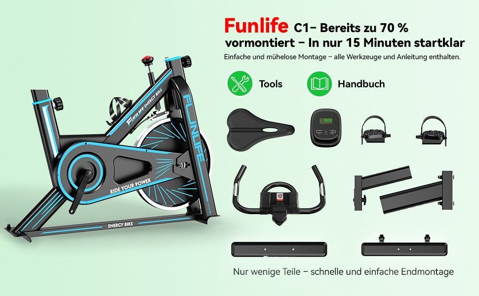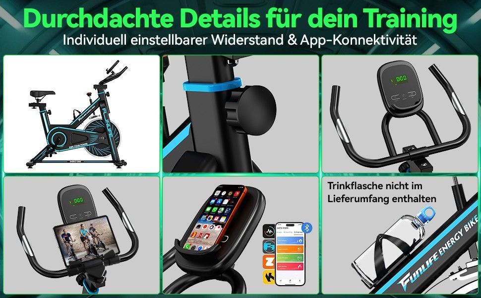 FunLife C1 Heimtrainer Fahrrad & Ergometer, Spinning Bike Fitnessbike Indoor