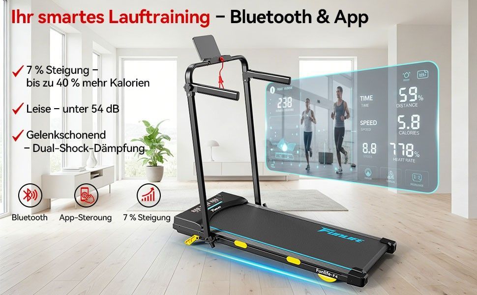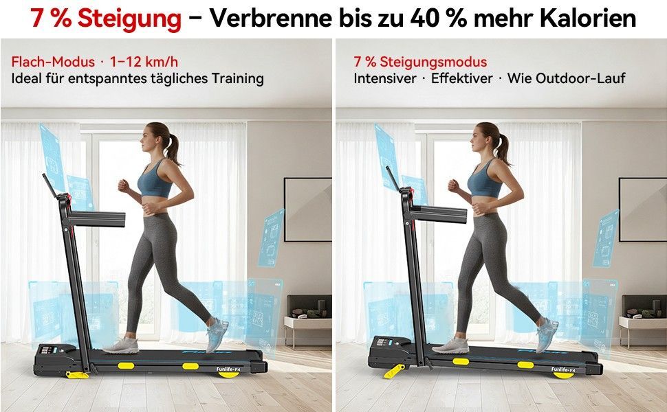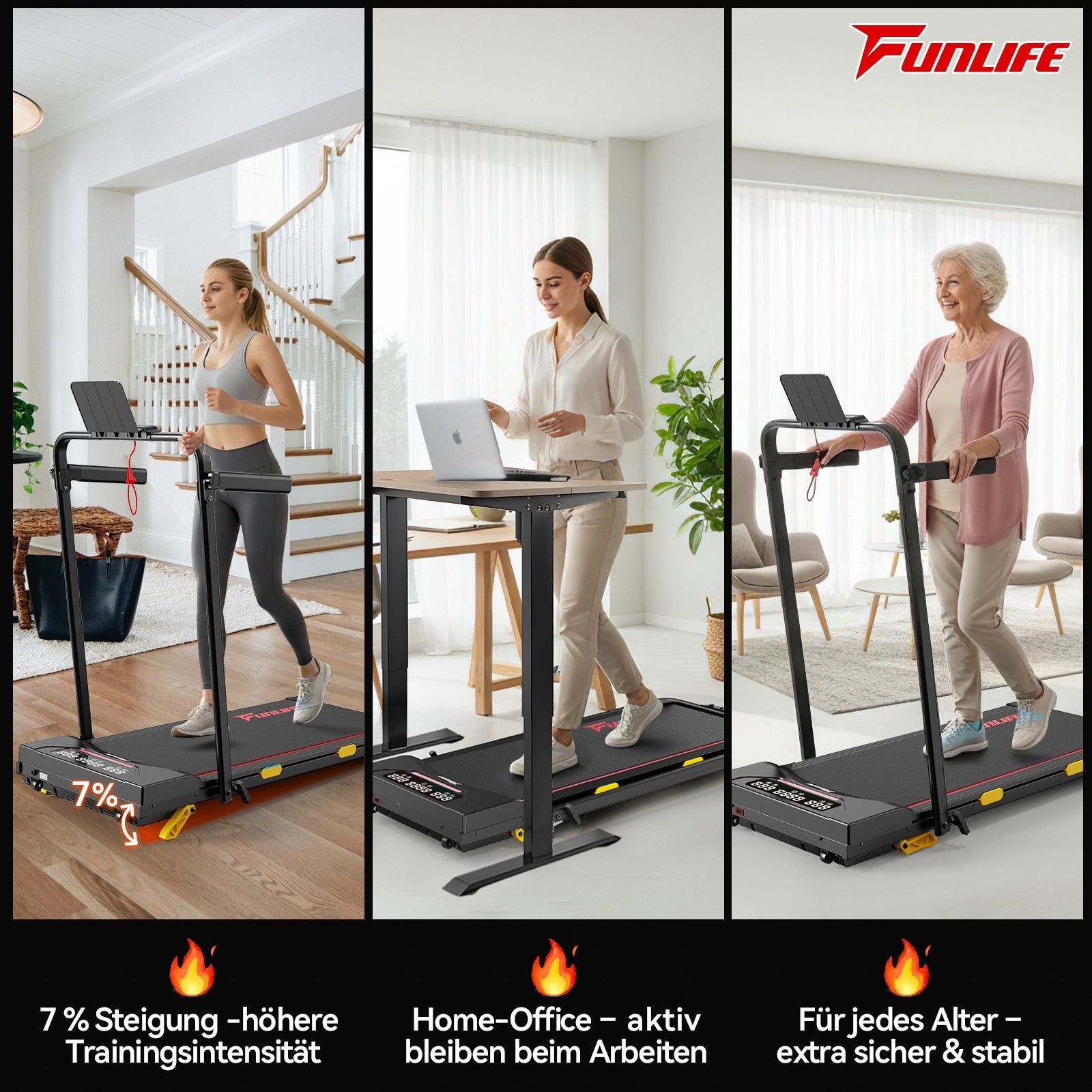 FunLife F4 Walking Pad mit Steigung, Laufband für Zuhause klappbar