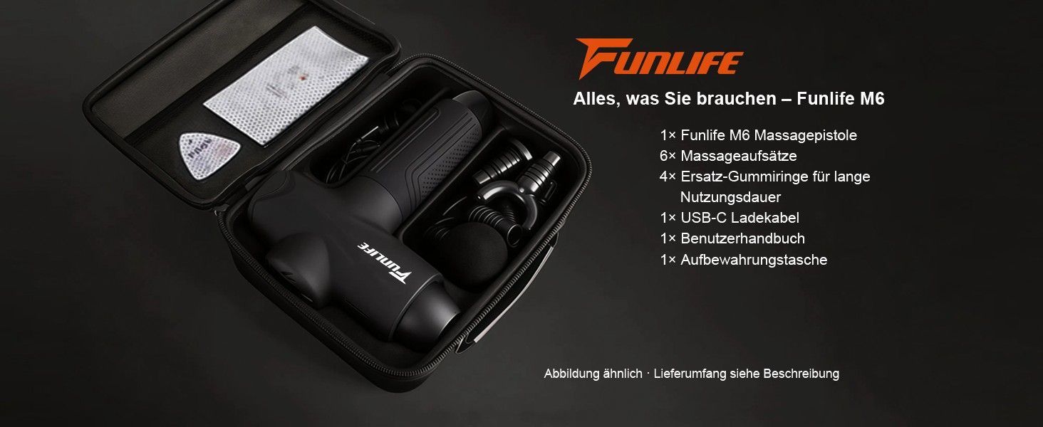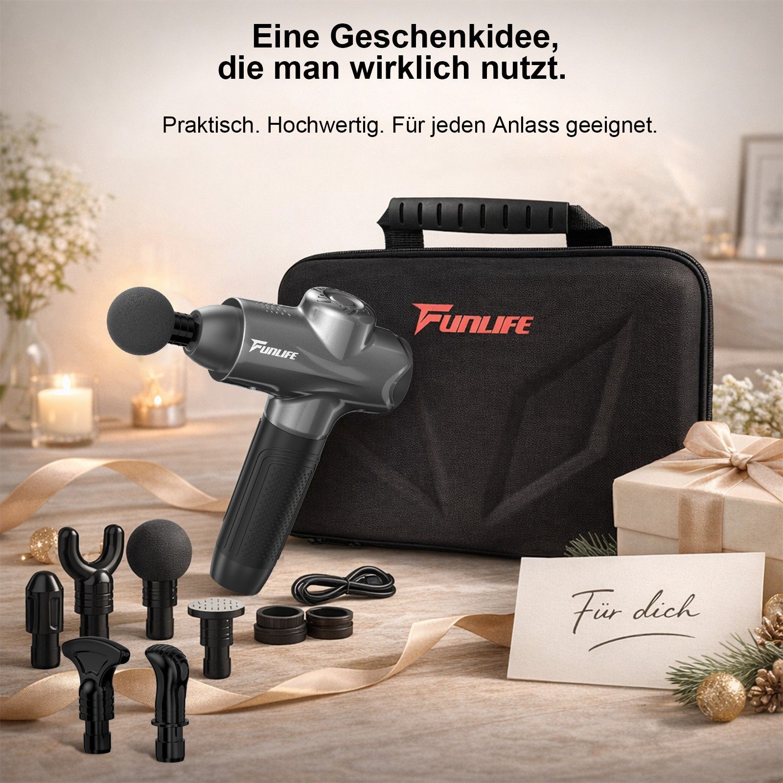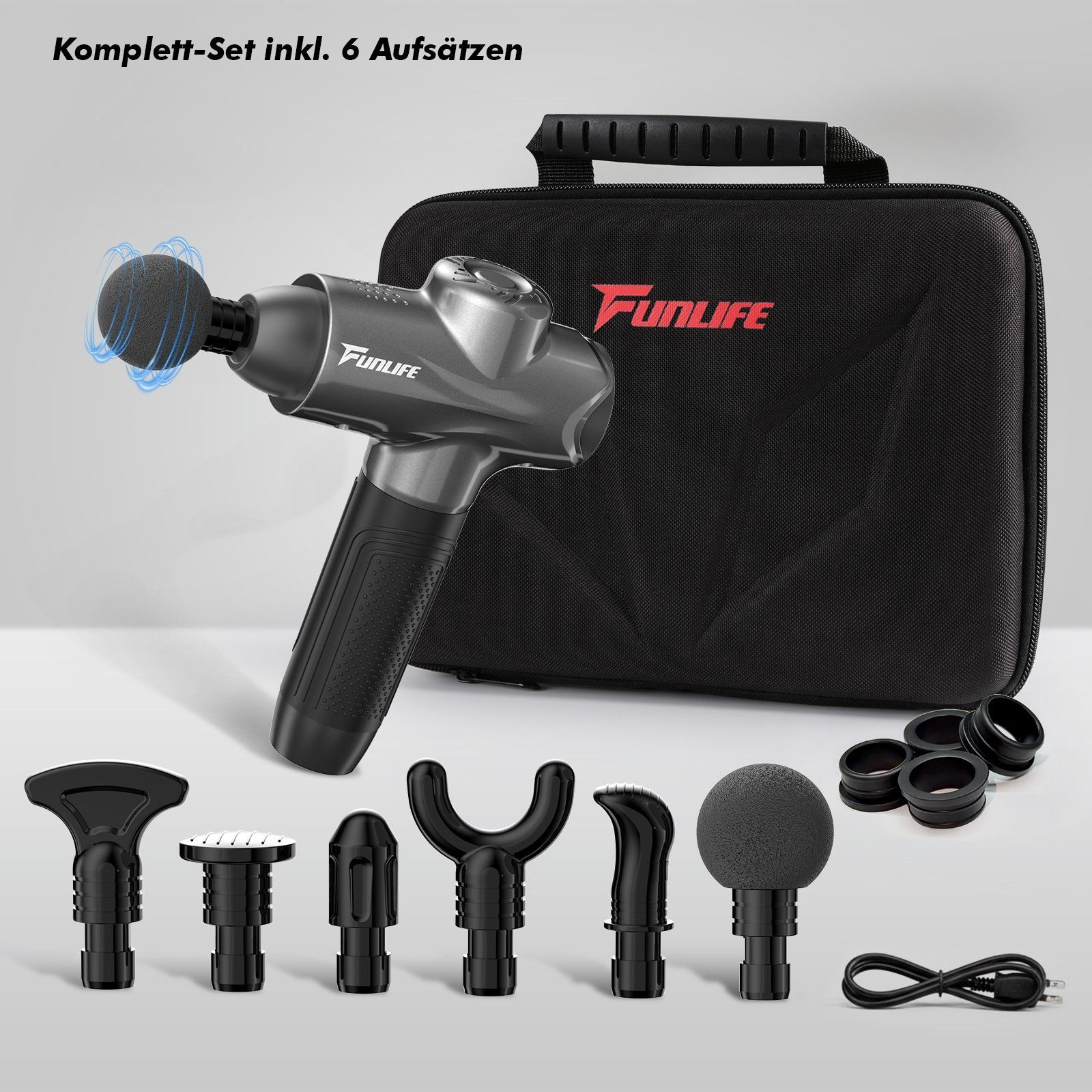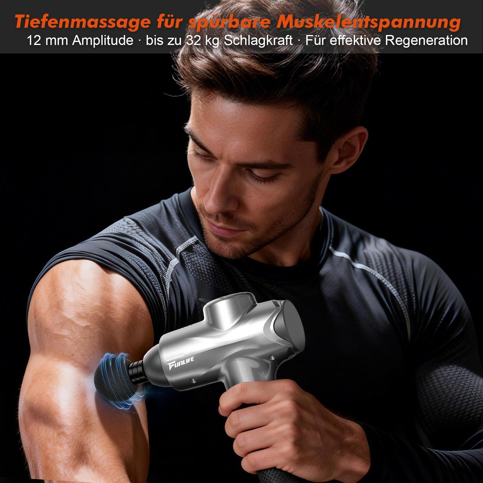 FunLife M6 Massagepistole, 3200RPM Hochleistungsmotor, 12mm Tiefenhub, 6 Massageköpfe