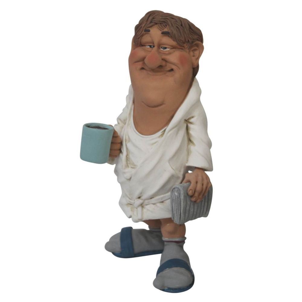 Funny Life - Morgens ist die Welt noch in Ordnung - Mann im Bademantel und Kaffebeche