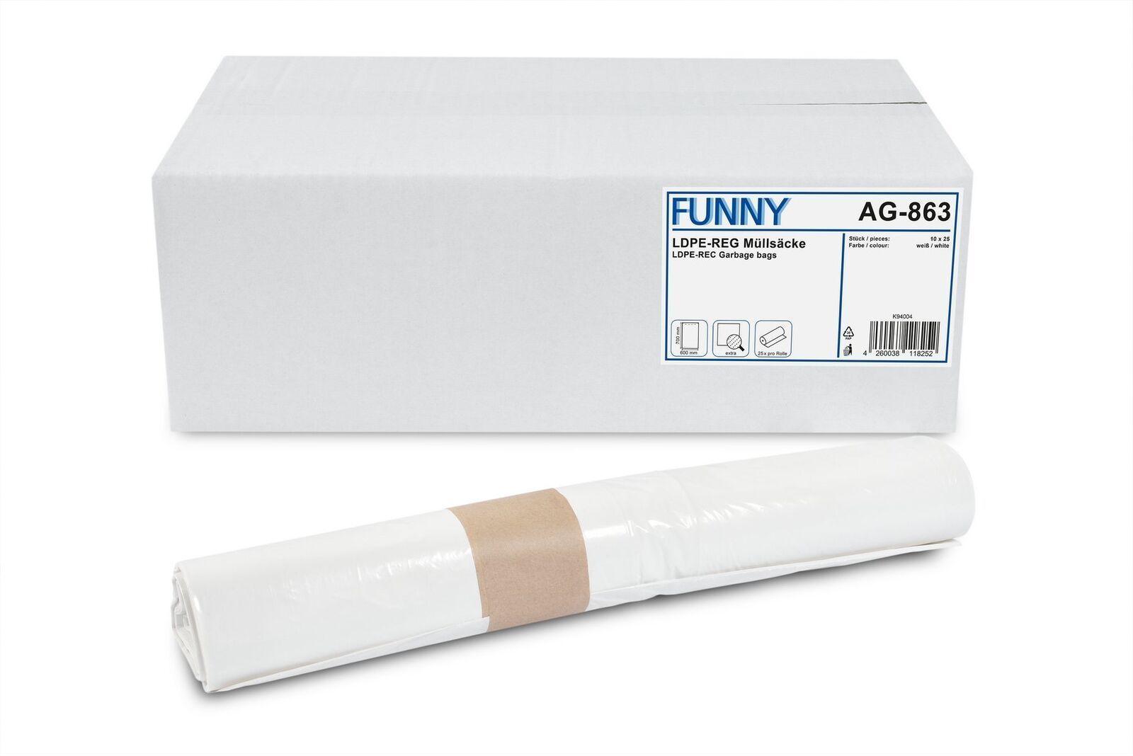 Funny Müllbeutel Müllsack Restmüll weiß 60 Liter 250 Stück LDPE-Reg. "extra"