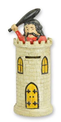 • Spardose Mann Turm Gusseisen Sparkasse Replikat Retro Design Dekoration