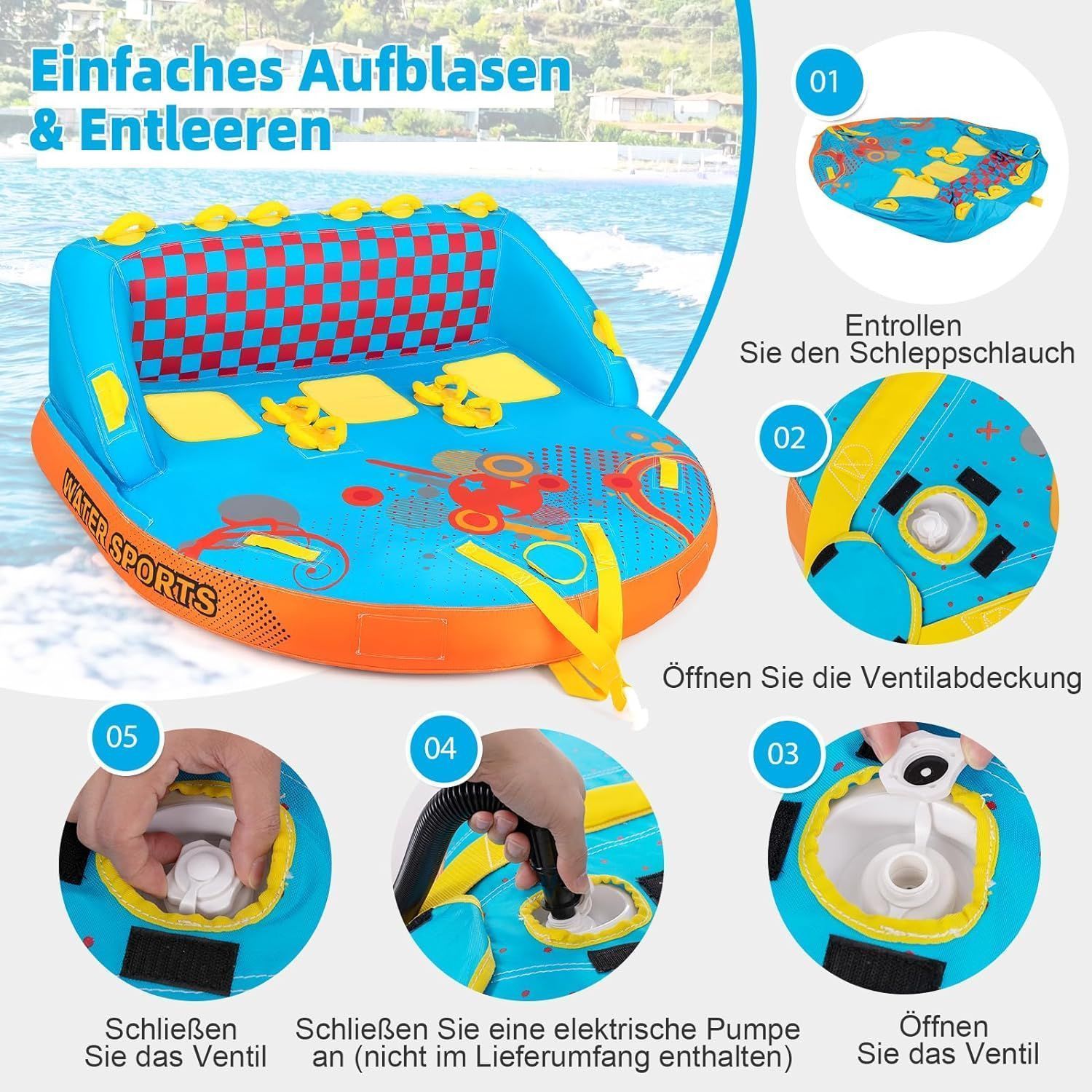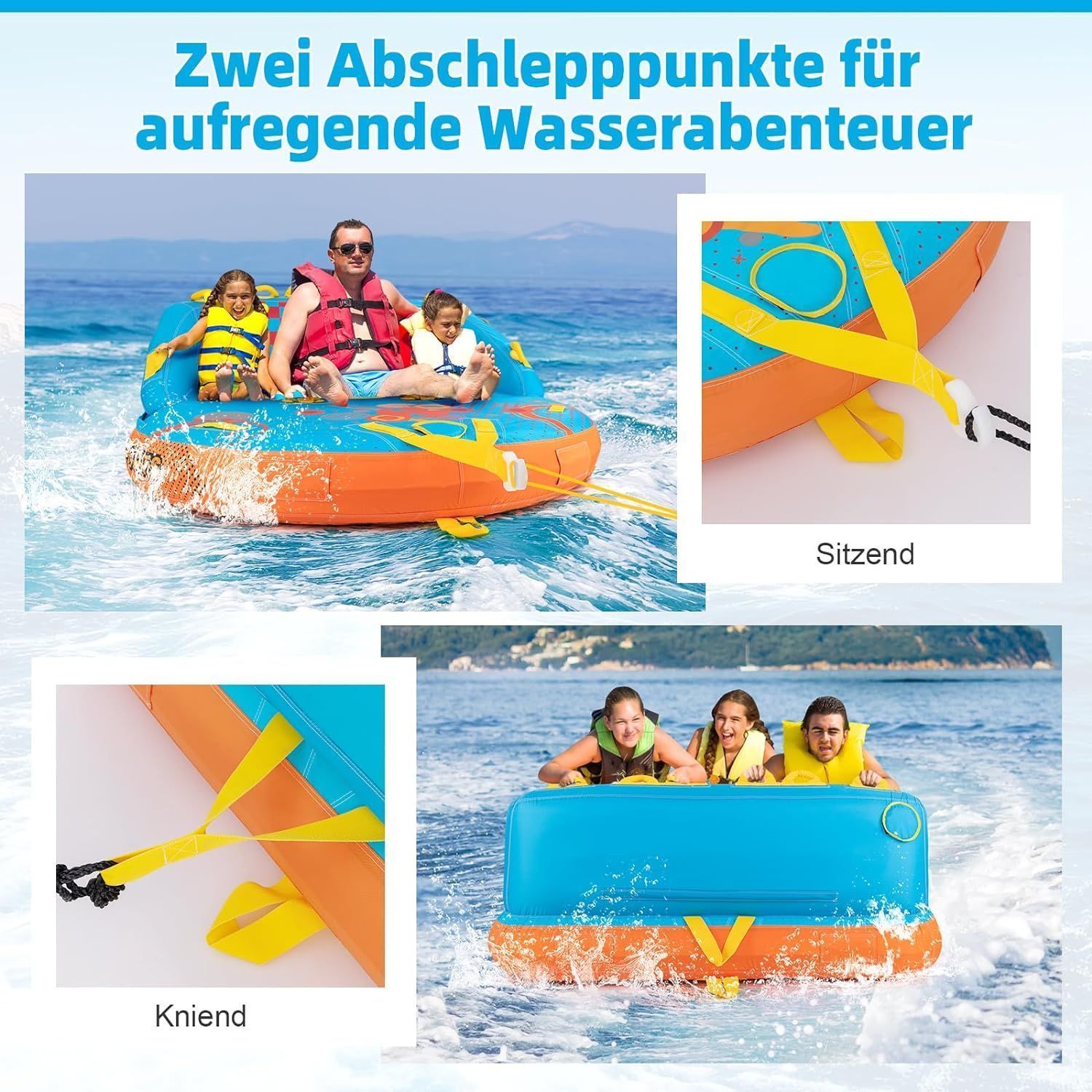 Funtube f¨¹r 3 Personen, Towable Tube zum Sitzen & Knien, Formula Tube f¨¹r Boot